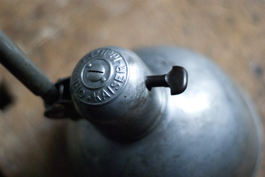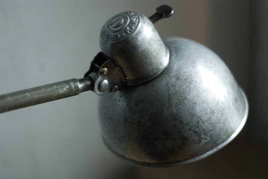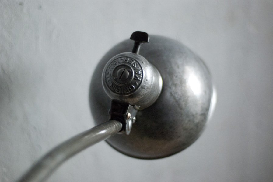 Die Lampe ist am Schim mit „Original Kaiser Idell“ und am Gelenk mit „original Jdell“ geprägt.