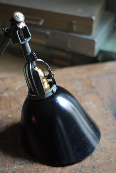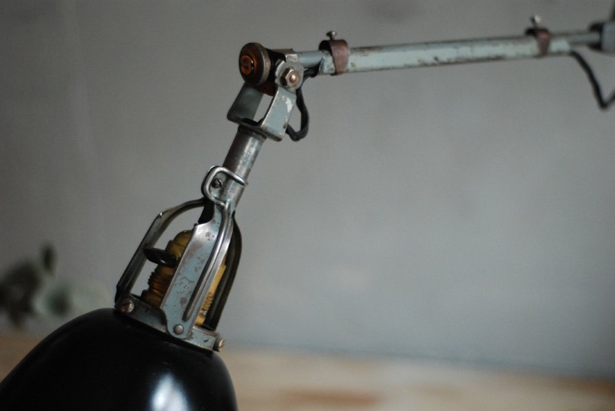 Wundeschöne frühe Scherenlampe Midgard in Originalzustand mit schrägem Reflektor aus Aluminium, Mod.110.