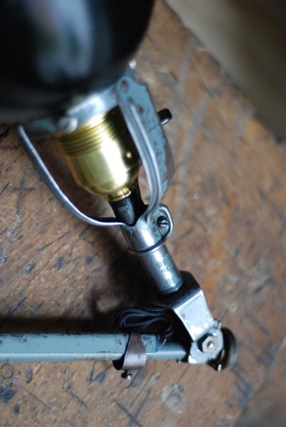 Die Elektrik wurde dreiadrig erneuert und generalüberholt. Es wurde ein schwarzes, verseiltes stoffummanteltes Kabel verwendet. Die Leuchte wird mittels eines Drehschalters an der schoenen Fassung betätigt.