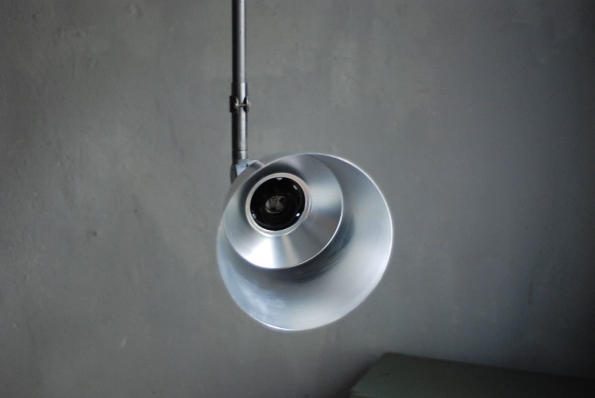 Die Leuchte befindet sich in einem guten gebrauchten Zustand. Der Schirm aus Aluminium weist  sehr leichte Kratzer auf. Die Leuchte ist zwei Mal am Gelenk  mit „Midgard DDR“ geprägt.