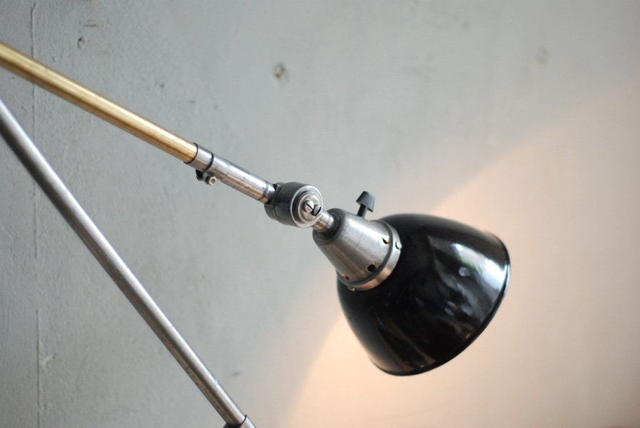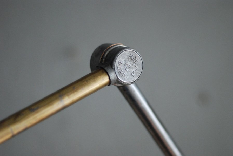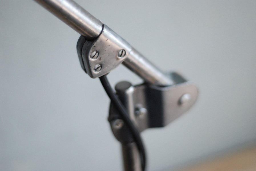 Nach der kompletten Zerlegung und sorgsamen Reinigung wurden die Elemente der Leuchte voll entlackt, versiegelt und neu aufgebaut. Alle Einzelteile sind sorgfältig gereinigt, entrostet, neu geölt worden.