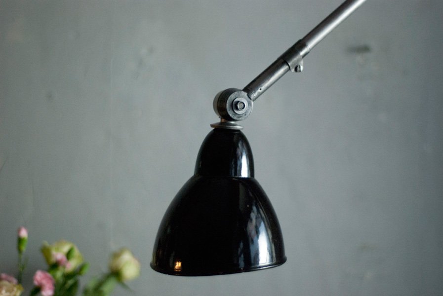 Der Entwurf dieser einzigartigen Gelenklampe aus der DDR Zeit stammt von Curt Fischer, der ab ca. 1920 an der Idee des „lenkbaren Lichtes“ gearbeitet hat. Noch vor den so bekannten Entwürfen von Christian Dell oder Marianne Brandt setzte Curt Fischer mit der allseitig beweglichen Arbeitsplatzleuchte die Idee des so genannten ‚lenkbaren Lichtes‘ um. Die Metallwerkstatt im Bauhaus in Weimar wurde mit Midgard-Leuchten erhellt und diente den Bauhaus-Studenten als Vorbild und ist später auch in die Wohnzimmereinrichtung von Ilse und Walter Gropius in deren Meisterhaus am Dessauer Bauhaus belegbar.