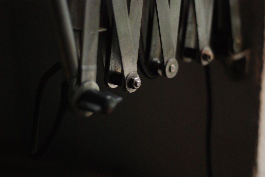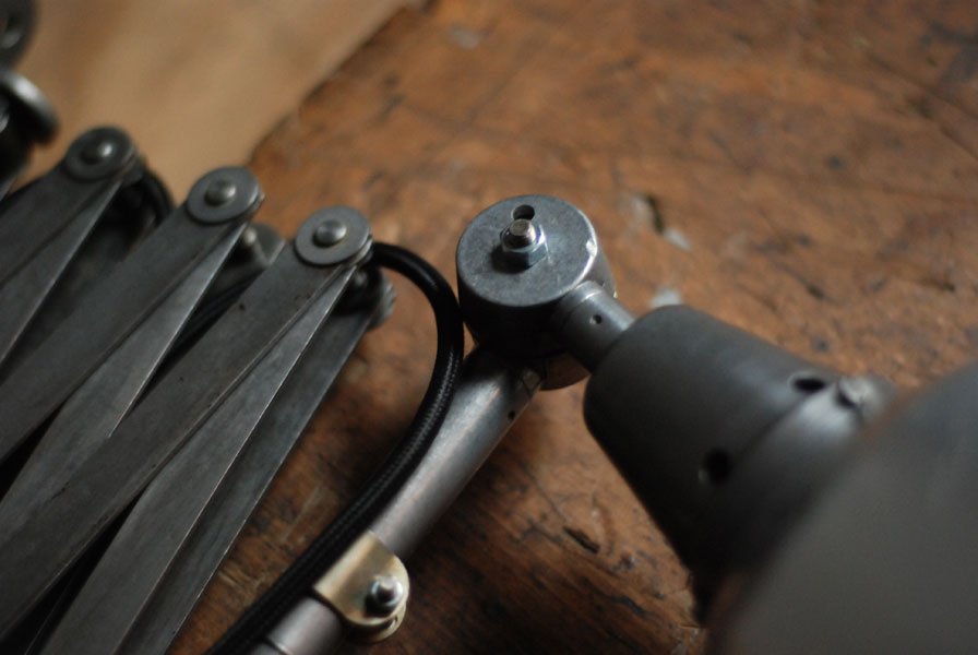 Die Grösste Scherenlampe Midgards aus der DDR Zeit in Stahloptik mit Reflektor aus Aluminium