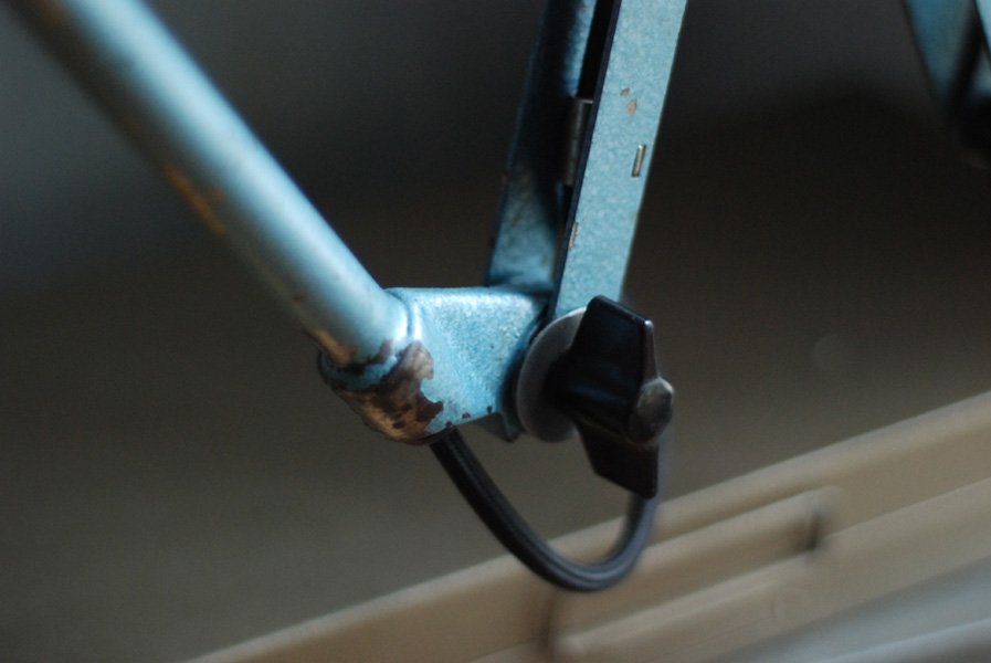 Die Elektrik wurde dreiadrig erneuert und generalüberholt. Es wurde ein schwarzes, stoffummanteltes Kabel verwendet. Die Leuchte wird mittels eines Drehschalters an der Fassung betätigt.