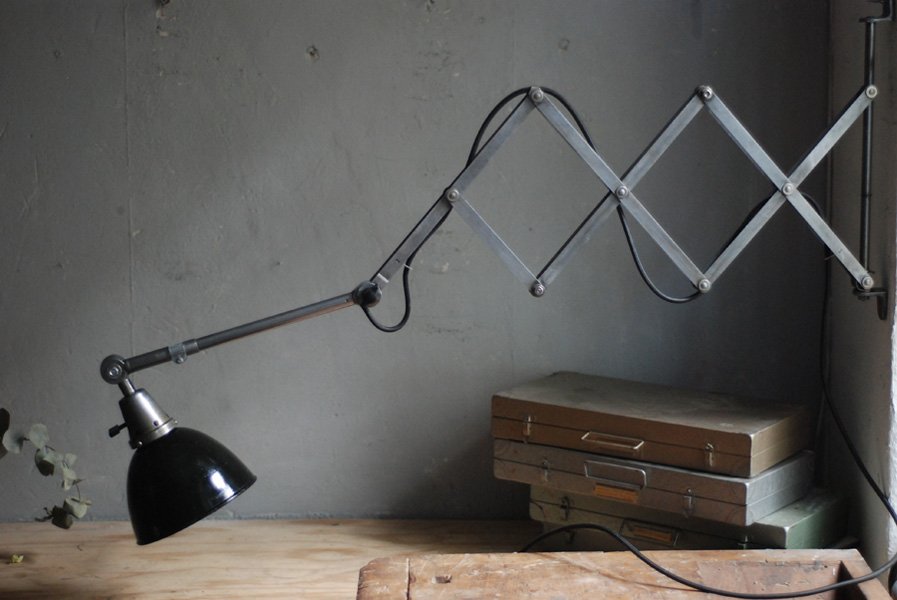 Der Entwurf dieser Scherenlampe stammt von Curt Fischer, der ab ca. 1920 an der Idee des „lenkbaren Lichtes“ gearbeitet hat. Noch vor den so bekannten Entwürfen von Christian Dell oder Marianne Brandt setzte Curt Fischer mit der allseitig beweglichen Arbeitsplatzleuchte die Idee des so genannten ‚lenkbaren Lichtes‘ um. Die Metallwerkstatt im Bauhaus in Weimar wurde mit Midgard-Leuchten erhellt und diente den Bauhaus-Studenten als Vorbild und ist später auch in die Wohnzimmereinrichtung von Ilse und Walter Gropius in deren Meisterhaus am Dessauer Bauhaus belegbar.