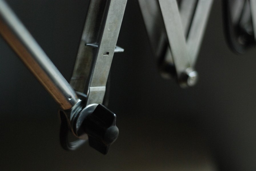 Nach der kompletten Zerlegung und sorgsamen Reinigung wurden die Elemente der Leuchte entlackt, poliert, gebürstet, mehrfach versiegelt und neu aufgebaut. Alle Einzelteile wurden entrostet, poliert, geölt.