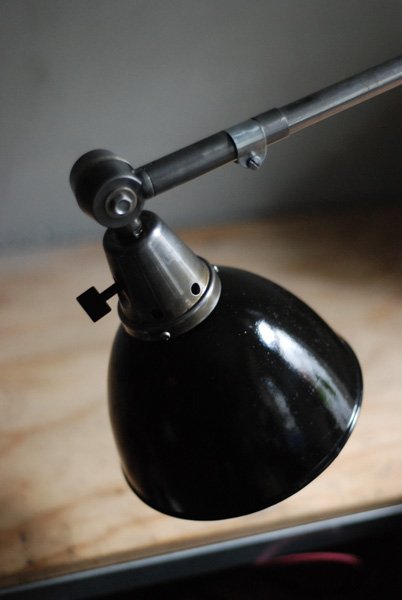 Die Lampe befindet sich in einem gebrauchten sehr gutem Zustand, weist deutliche Alterspuren und eine schönen Patina auf. Der Reflektor aus Emaille ist in einem herrvorragend guten Zustand.