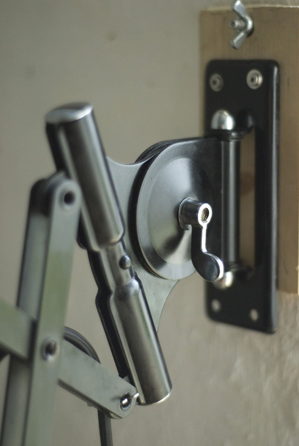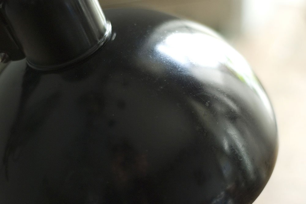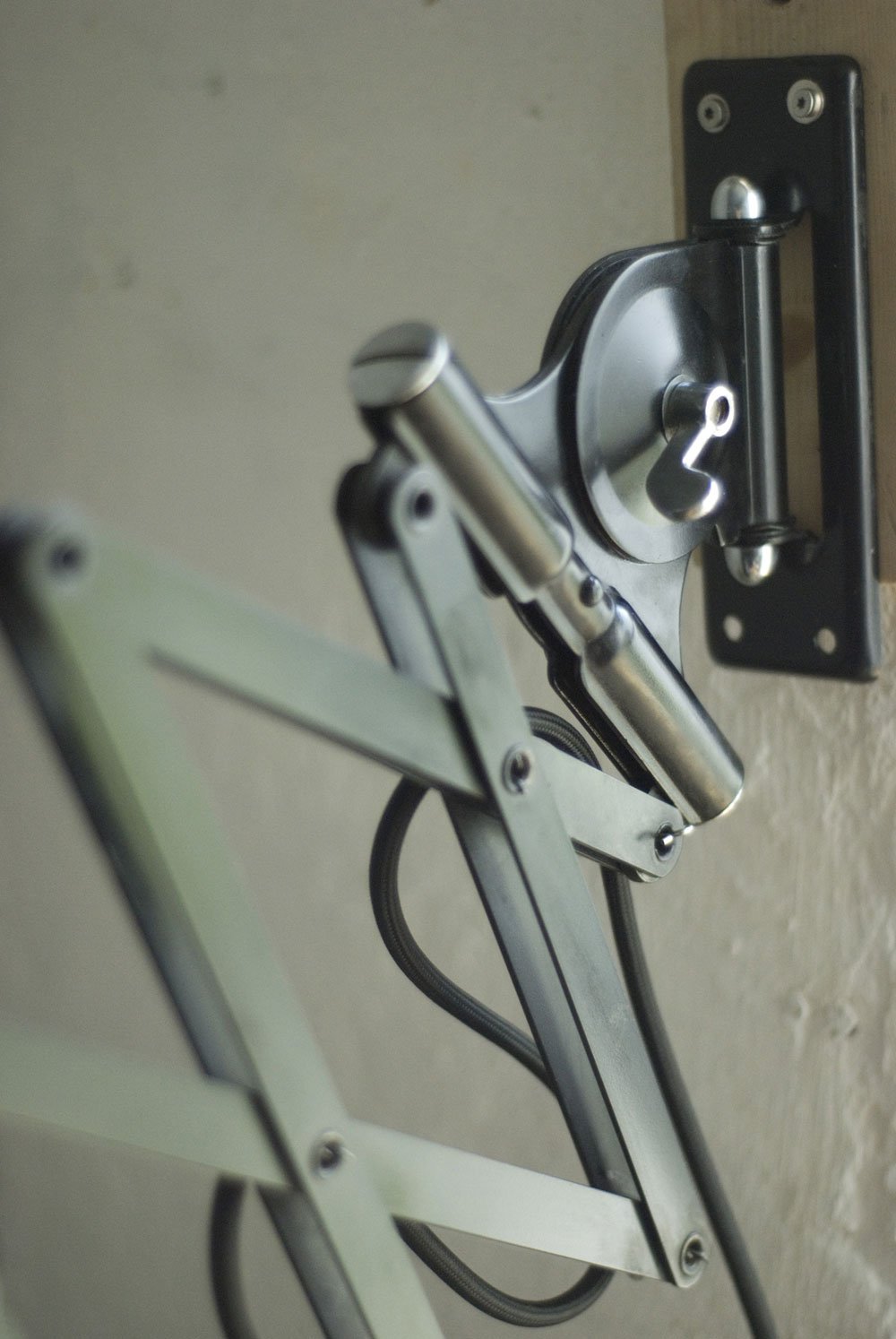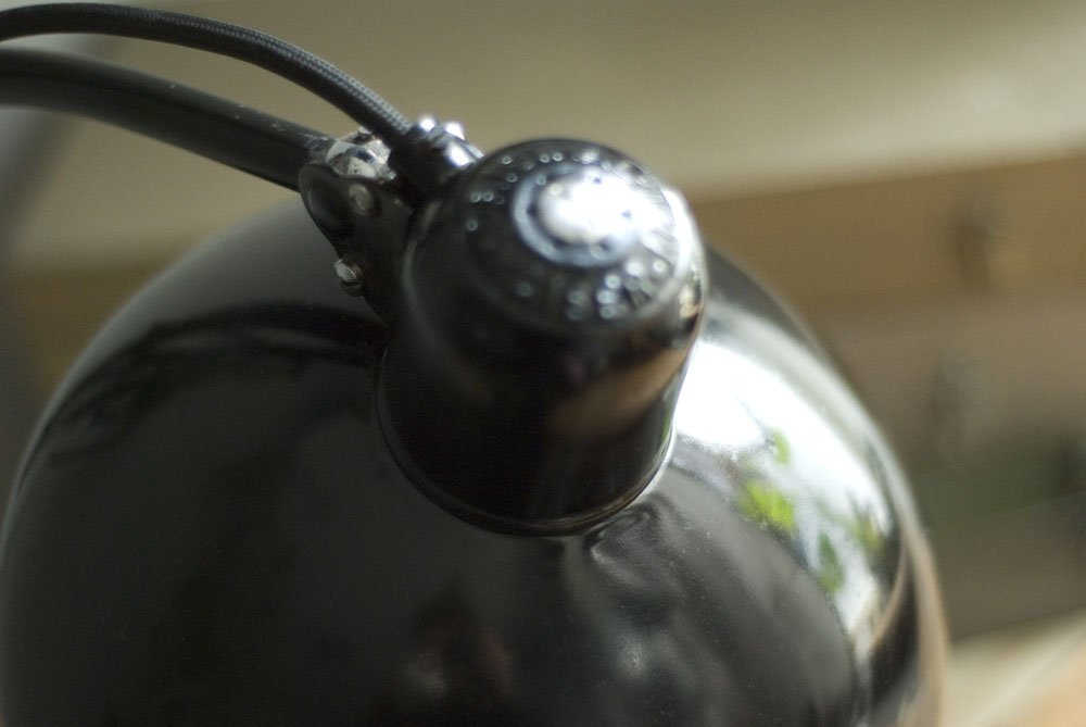 Grosse schwarze Scherenlampe Kaiser Idell 6614 mit leichen Zeitspuren.