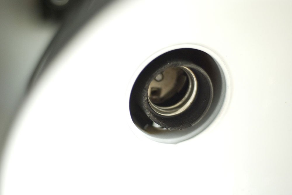 Die Elektrik wurde dreiadrig erneuert und generalüberholt. Es wurde ein schwarzes, stoffummanteltes Kabel verwendet. Ein Teil der Unterseite der Originalbakelifassung ist gebrochen, was die Funktion nicht stört. Ein Zwischenschalter kann nach Verabredung montiert werden.