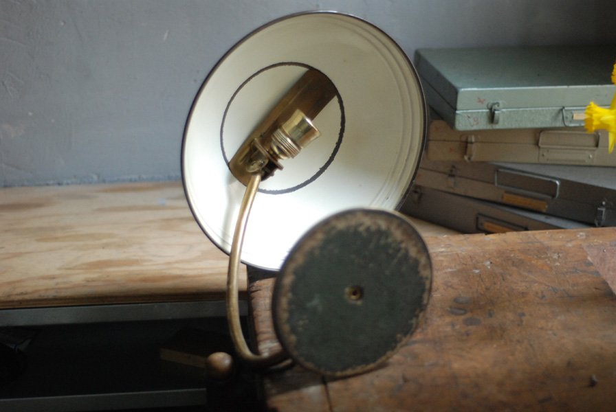 Grosse schwarze Schreibtischleuchte in Originalerhalt mit schöner Patina.