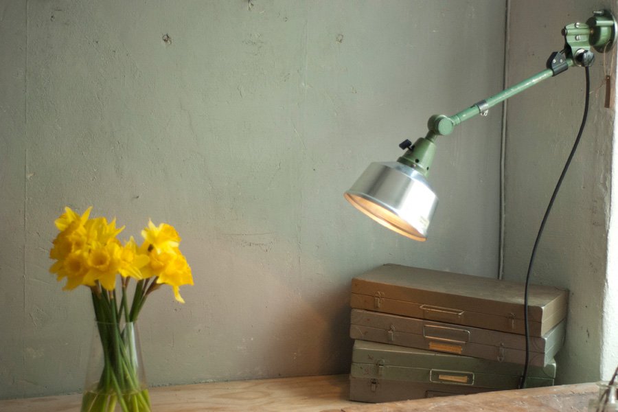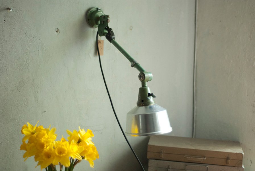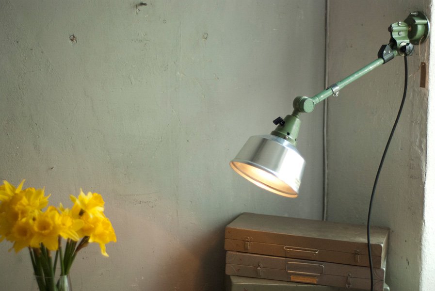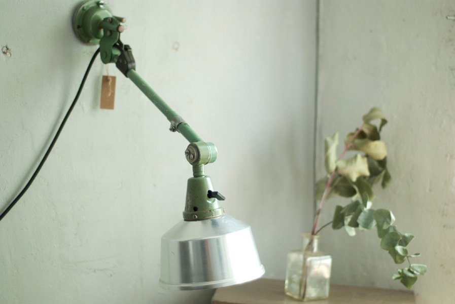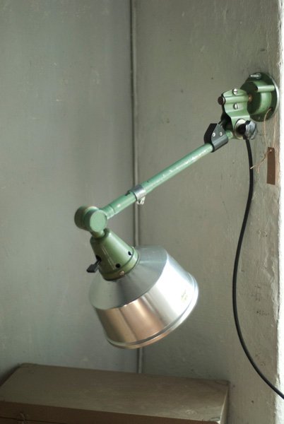 Grüne Wandlampe Midgard DDRP mit Reflektor aus Aluminium.