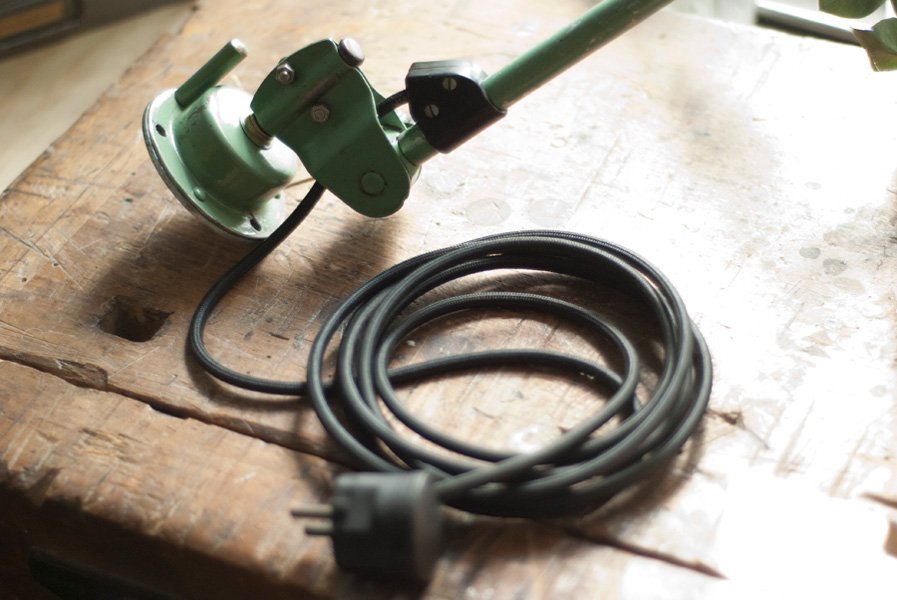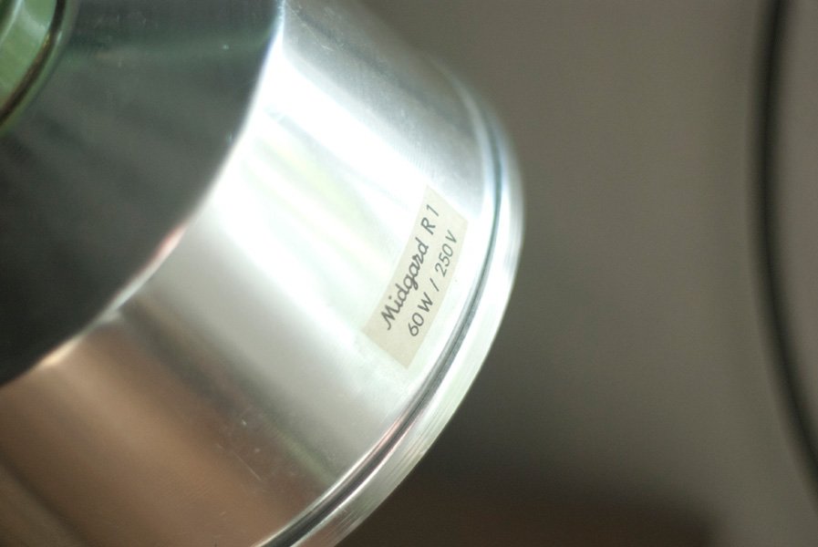 Geprägt ist die Leuchte mit MIDGARD und DDRP. Die Technik der Leuchte funktioniert einwandfrei. Die Elektrik wurde dreiadrig erneuert und generalüberholt. Es wurde ein schwarzes, stoffummanteltes Kabel verwendet. Die Leuchte wird im Uhrzeigersinn mittels eines Drehschalters an der Bakelitfassung betätigt.