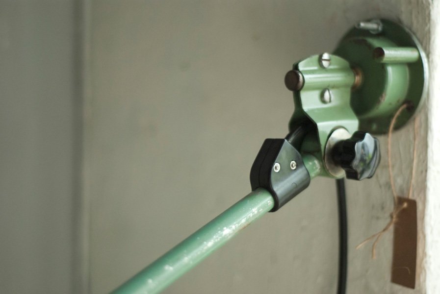Der Entwurf dieser einzigartigen Gelenklampe mit Doppelgelenk stammt von Curt Fischer, der ab ca. 1920 an der Idee des „lenkbaren Lichtes“ gearbeitet hat. Noch vor den so bekannten Entwürfen von Christian Dell oder Marianne Brandt setzte Curt Fischer mit der allseitig beweglichen Arbeitsplatzleuchte die Idee des so genannten ‚lenkbaren Lichtes‘ um. Die Metallwerkstatt im Bauhaus in Weimar wurde mit Midgard-Leuchten erhellt und diente den Bauhaus-Studenten als Vorbild und ist später auch in die Wohnzimmereinrichtung von Ilse und Walter Gropius in deren Meisterhaus am Dessauer Bauhaus belegbar.