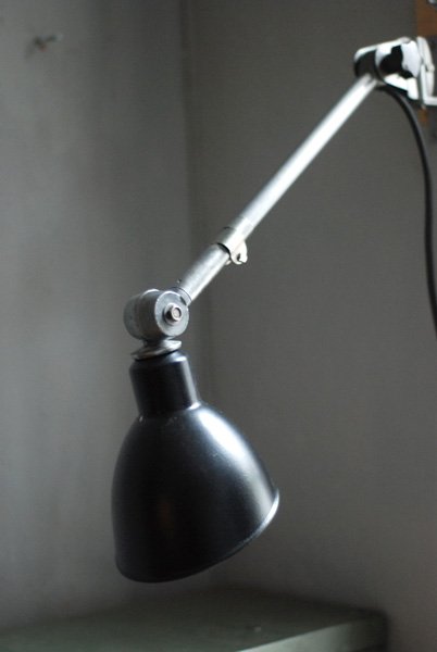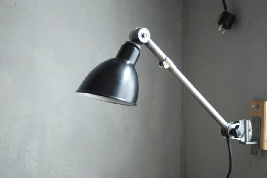 Der Entwurf dieser einzigartigen Gelenklampe aus der DDR Zeit stammt von Curt Fischer, der ab ca. 1920 an der Idee des „lenkbaren Lichtes“ gearbeitet hat. Noch vor den so bekannten Entwürfen von Christian Dell oder Marianne Brandt setzte Curt Fischer mit der allseitig beweglichen Arbeitsplatzleuchte die Idee des so genannten ‚lenkbaren Lichtes‘ um. Die Metallwerkstatt im Bauhaus in Weimar wurde mit Midgard-Leuchten erhellt und diente den Bauhaus-Studenten als Vorbild und ist später auch in die Wohnzimmereinrichtung von Ilse und Walter Gropius in deren Meisterhaus am Dessauer Bauhaus belegbar.