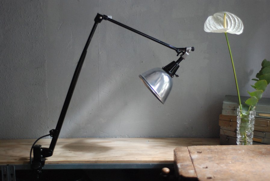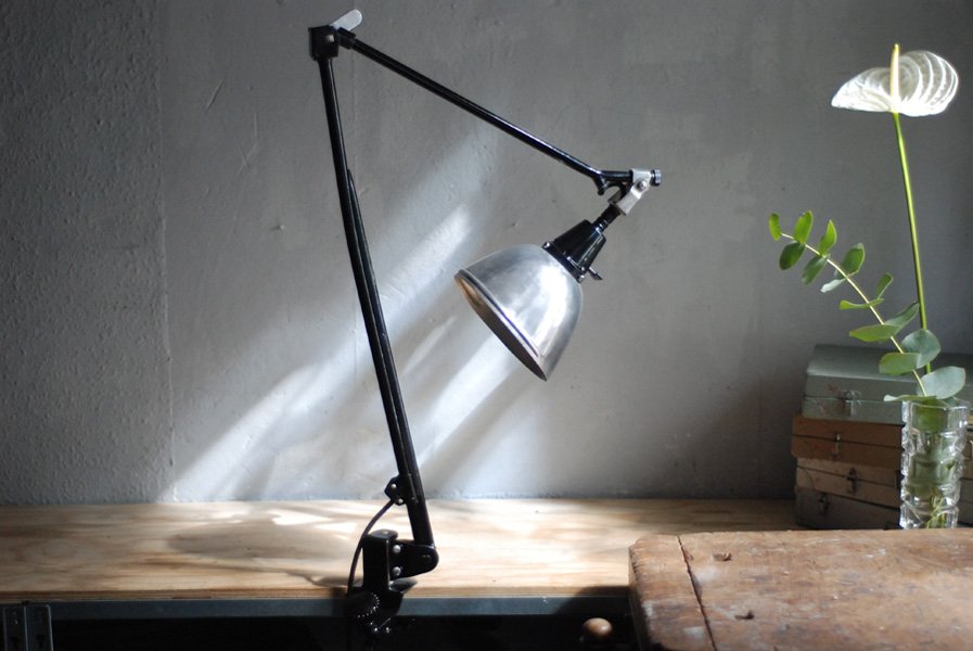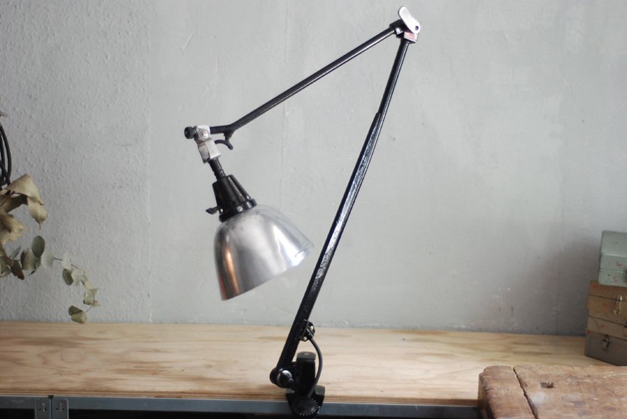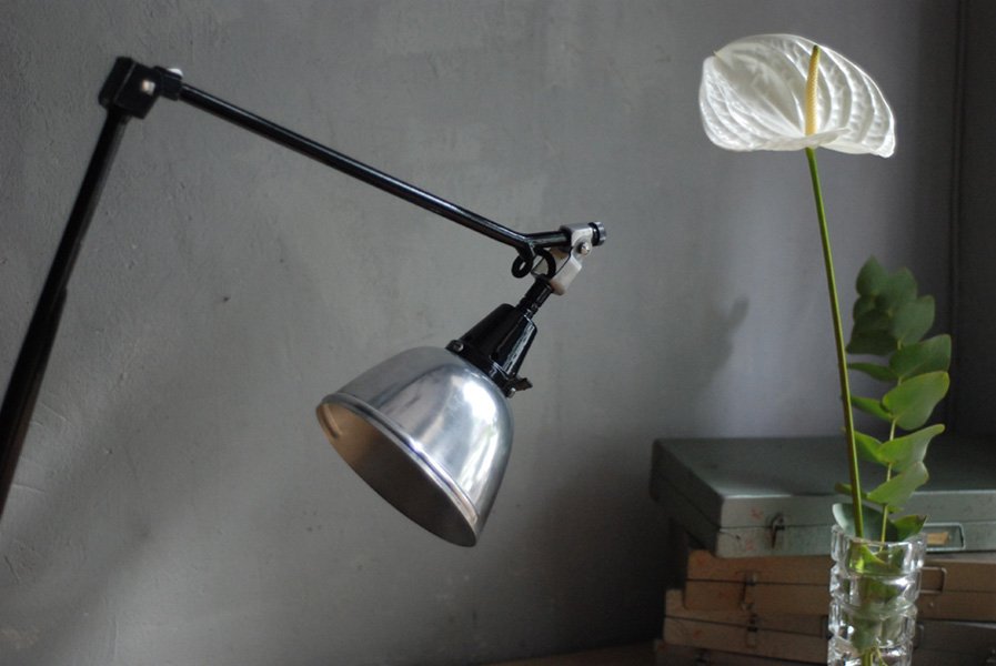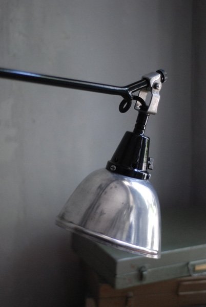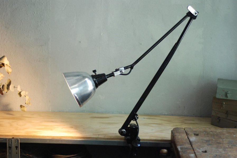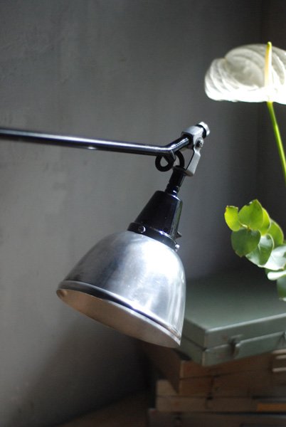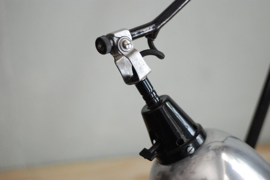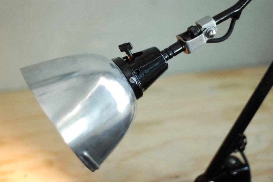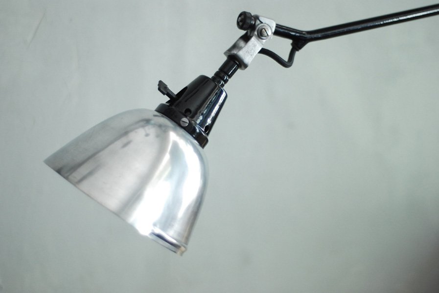 Elegante alte Gelenklampe Midgard 114 mit Reflektor aus Aluminium.