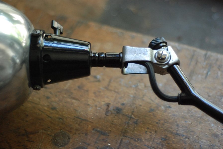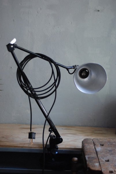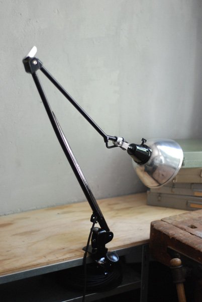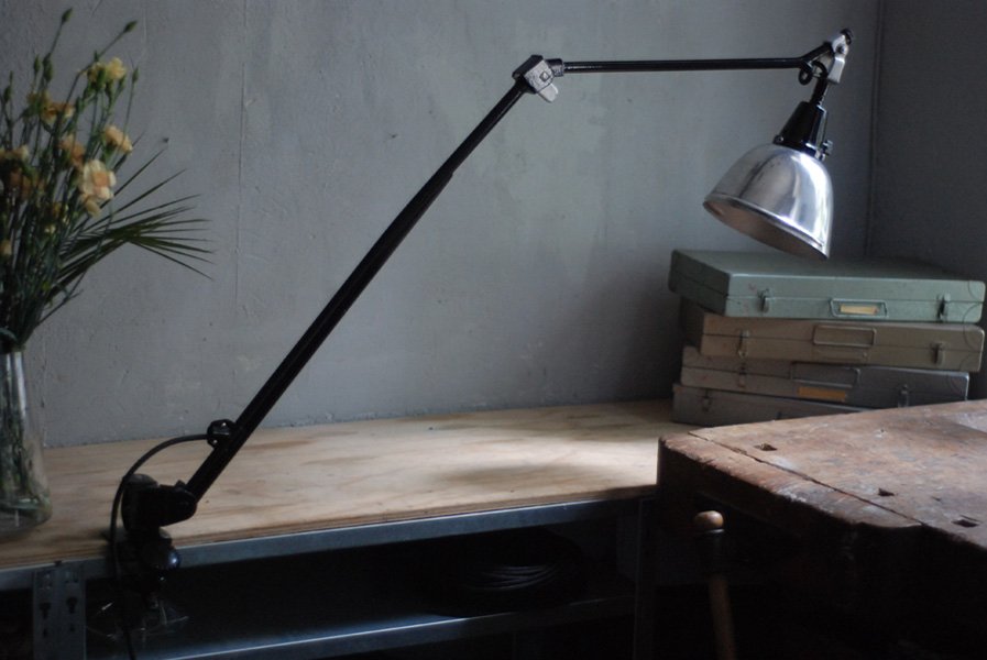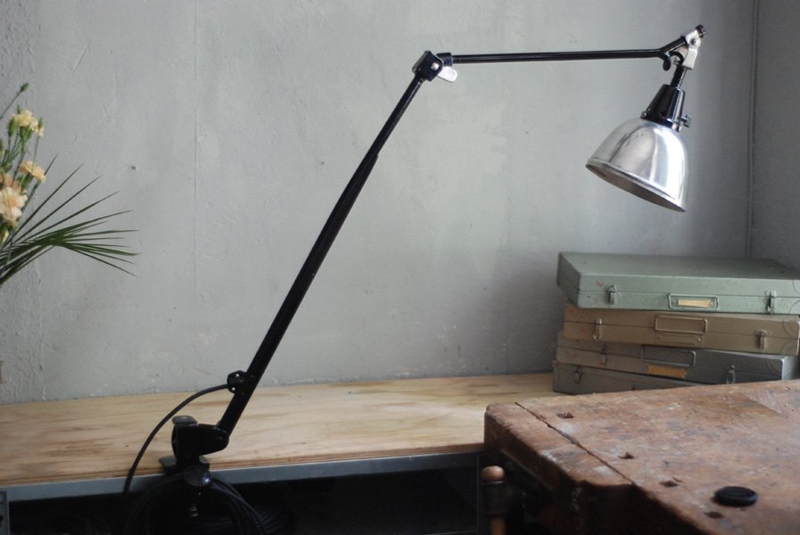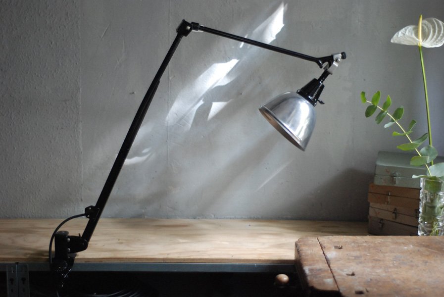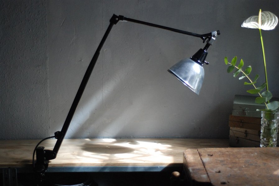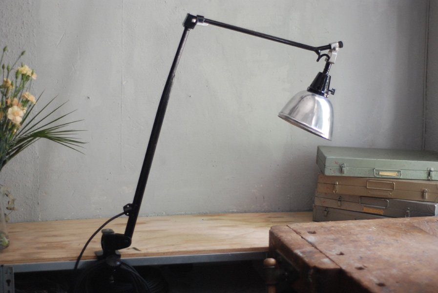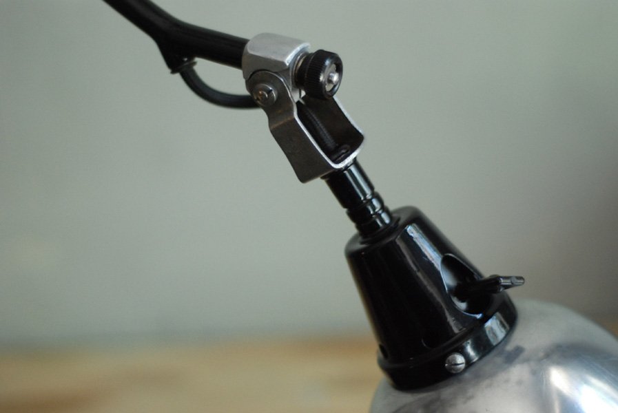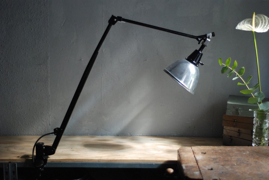 Elegante alte Gelenklampe Midgard 114 mit Reflektor aus Aluminium.