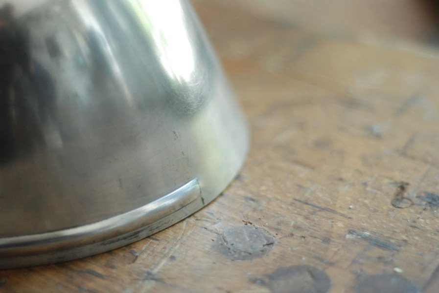 Nach der kompletten Zerlegung und sorgsamen Reinigung wurden die Elemente der Leuchte neu lackiert und neu aufgebaut. Alle Einzelteile wurden entrostet, gereinigt, poliert, geölt.