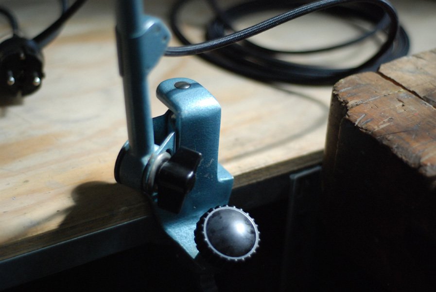 Mit dem Klemmfuss kann die Leuchte an dem Tisch befestigt werden.