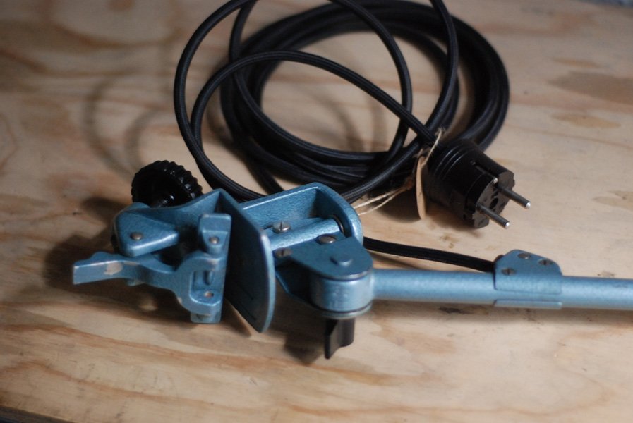 Die Technik der Leuchte funktioniert einwandfrei. Die Elektrik wurde dreiadrig erneuert und generalüberholt. Es wurde ein schwarzes, stoffummanteltes Kabel verwendet.