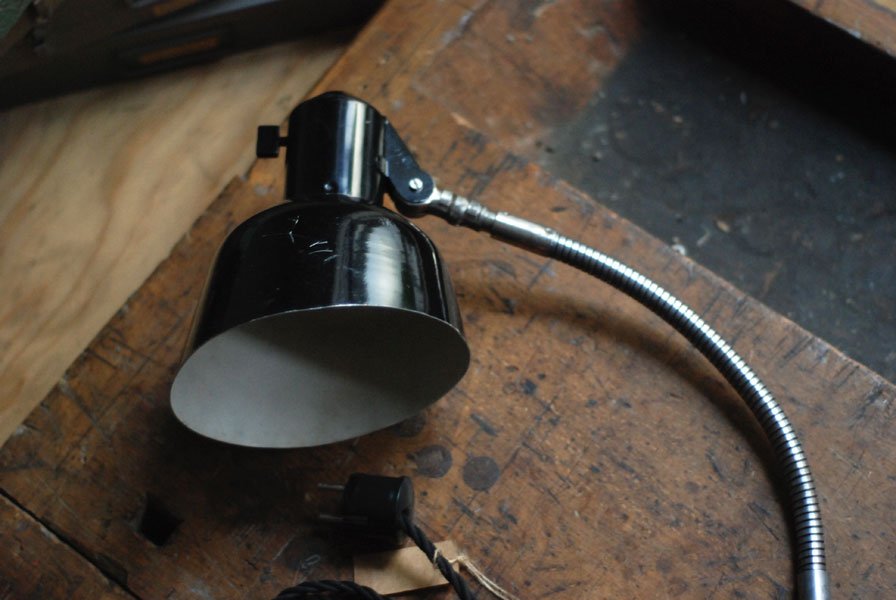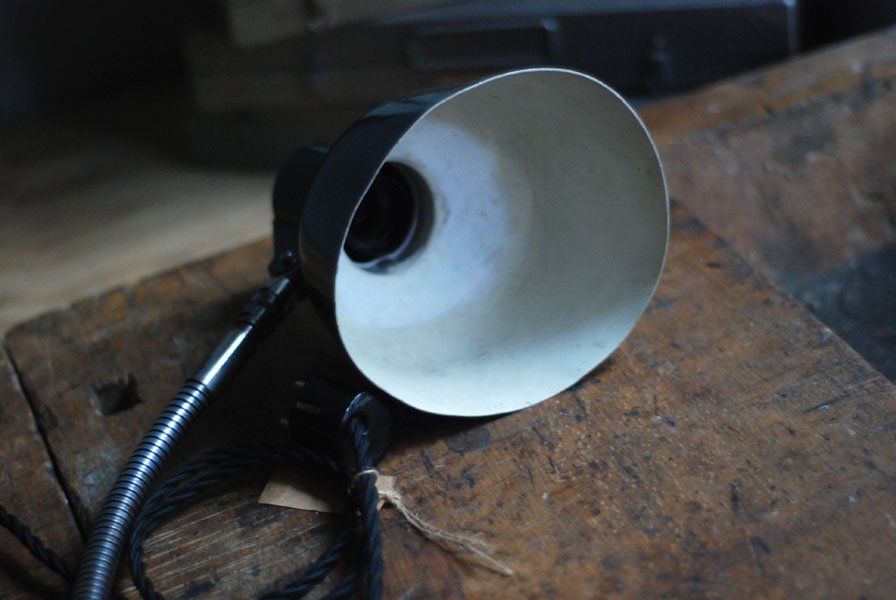 Nach der kompletten Zerlegung wurden die Elemente der Leuchte sorgfältig gereinigt und zusammengebaut. Die Lampe hat dem Alter entsprechend Lager- und Gebrauchsspuren, sie befindet sich in einem guten Zustand. Der Schirm weist leichte Kratzer und Nutzungspuren auf.