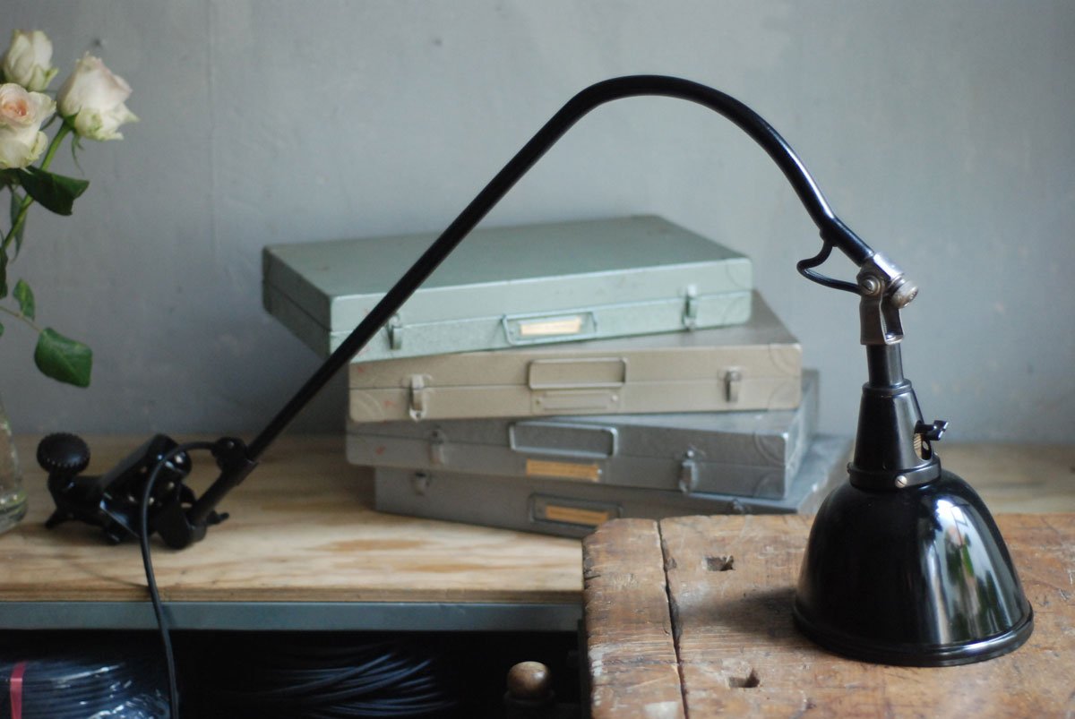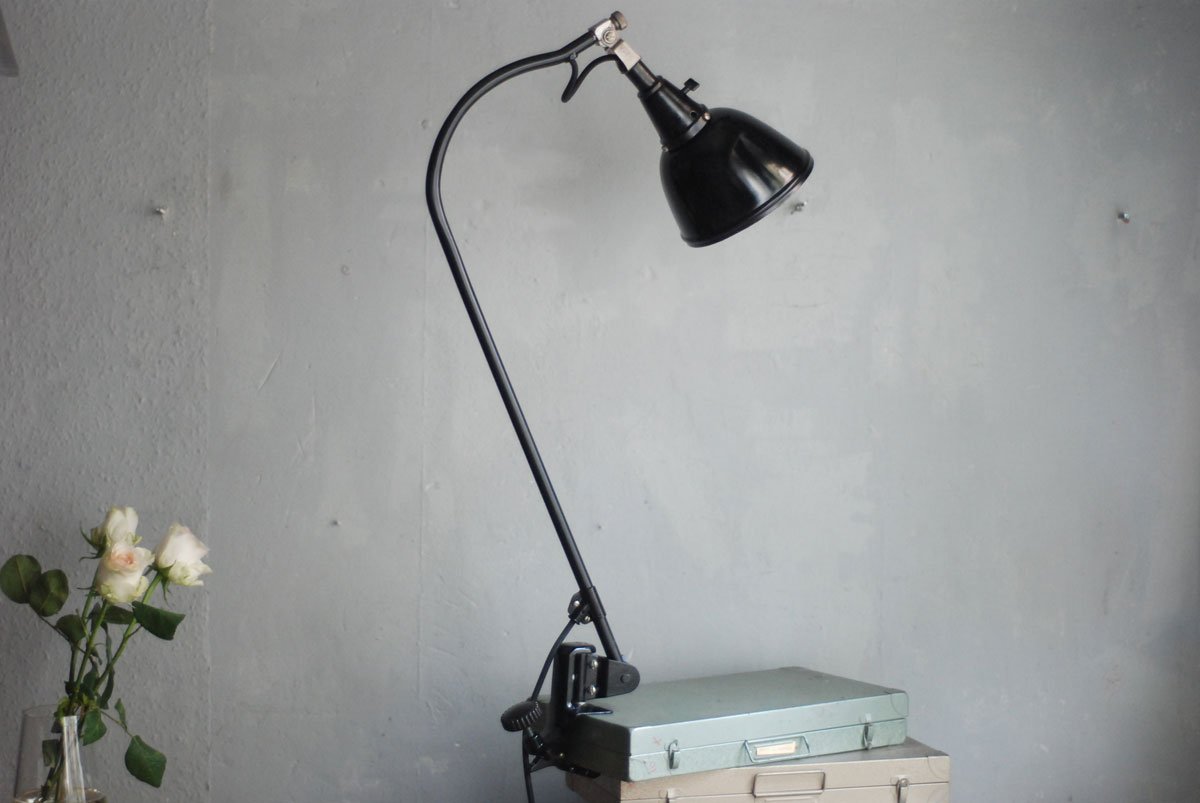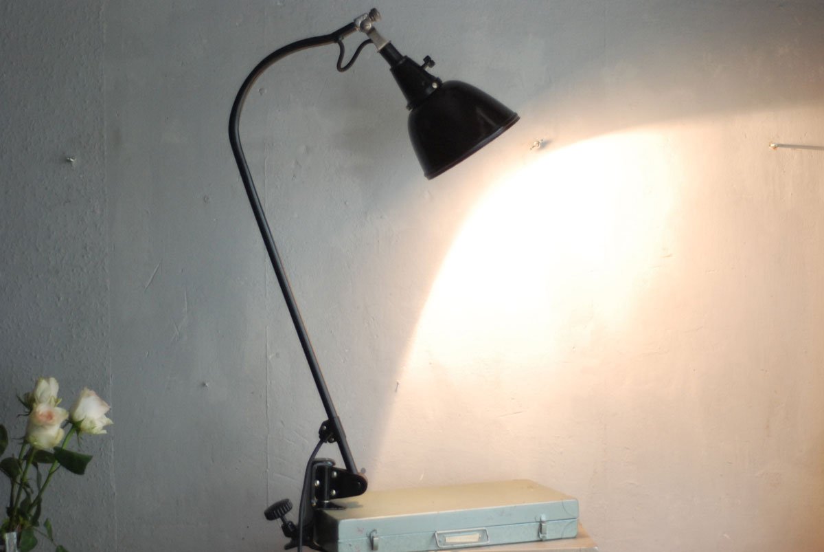 Emblematische alte Tischleuchte Midgard Typ 113 mit Klemmfuss