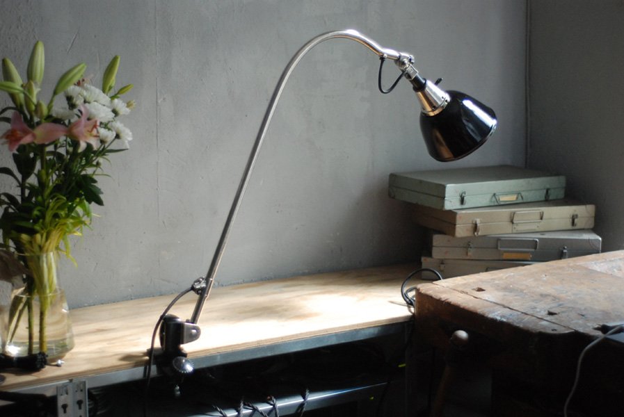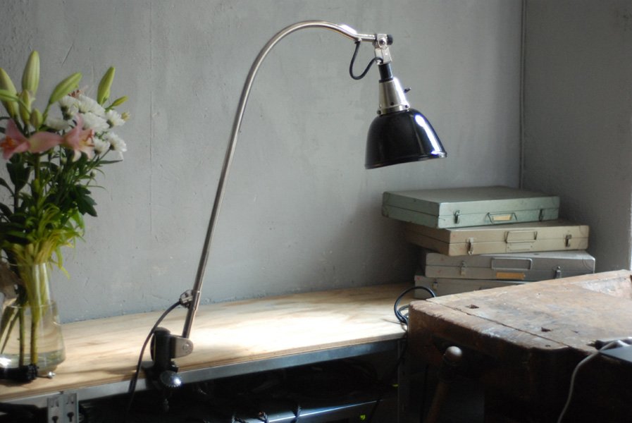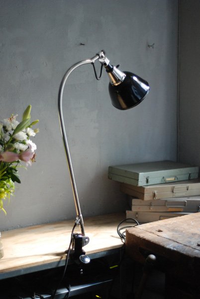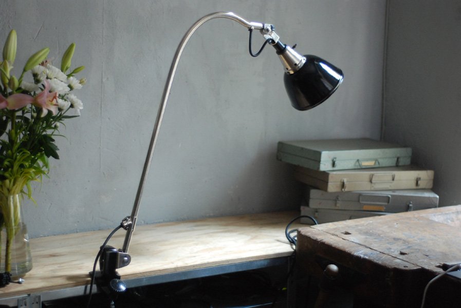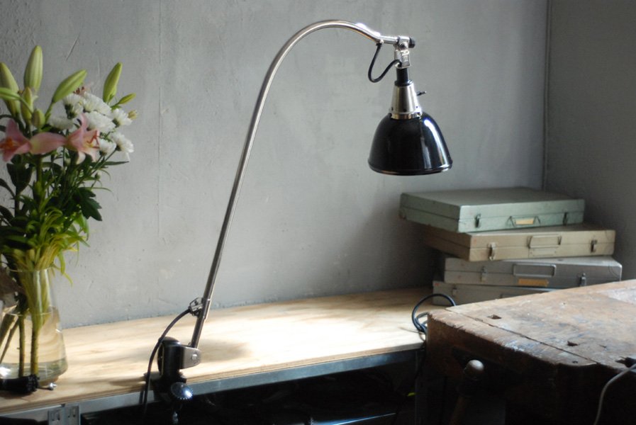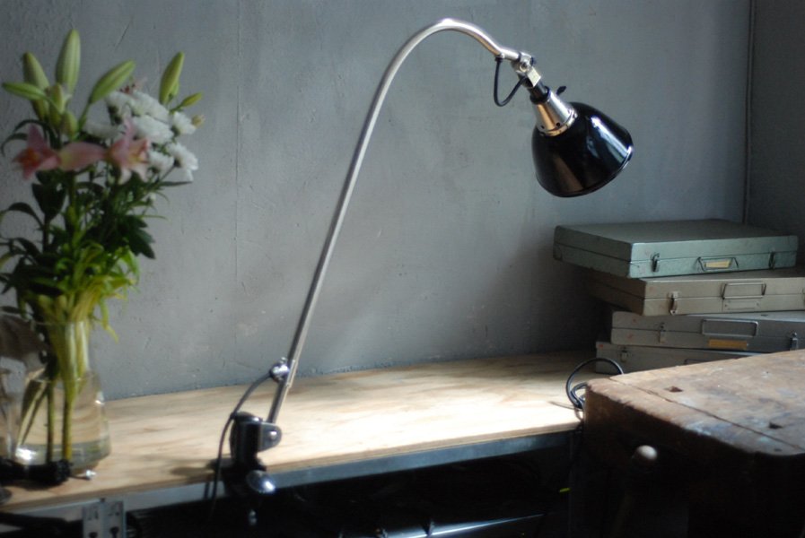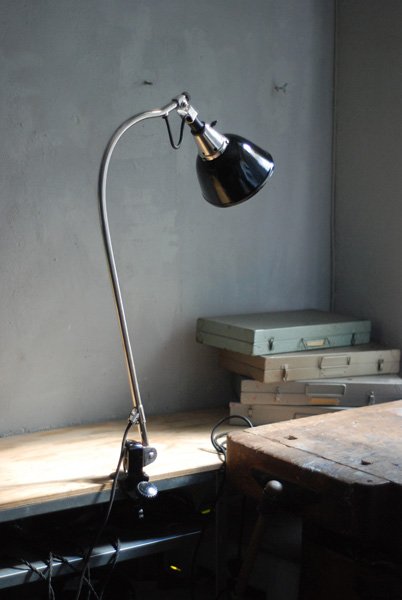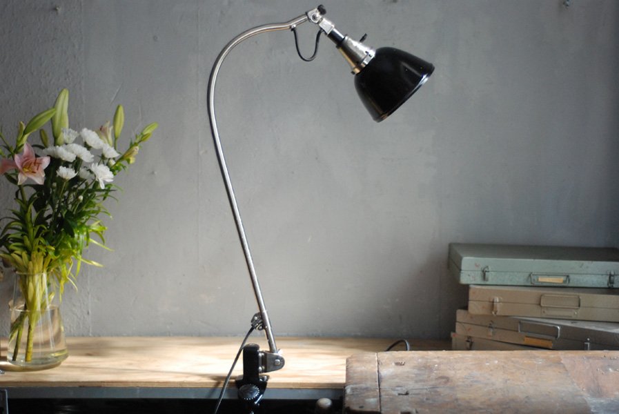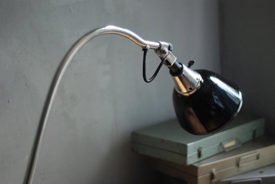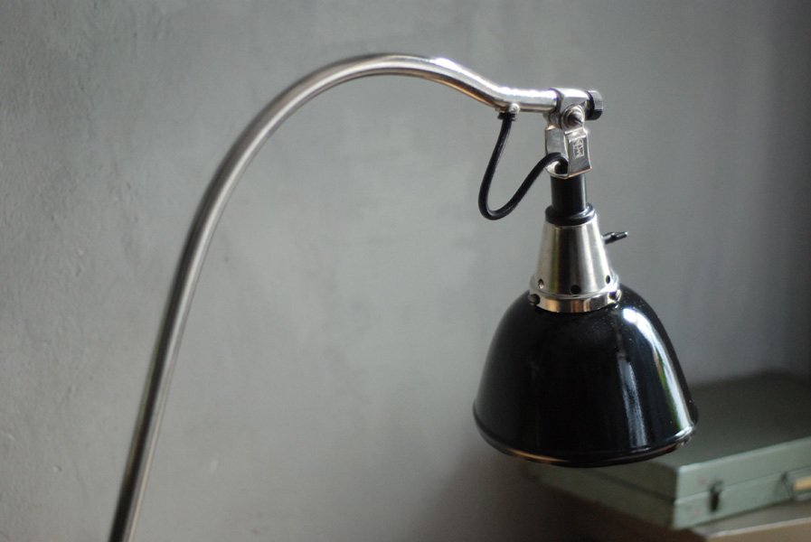 Emblematische alte Tischleuchte Midgard Typ 113 mit Klemmfuss