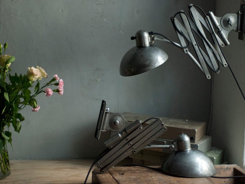 Diese Scherenlampen Kaiser Idell 6614 sind ein Designerklassiker aus den 30er Jahren.