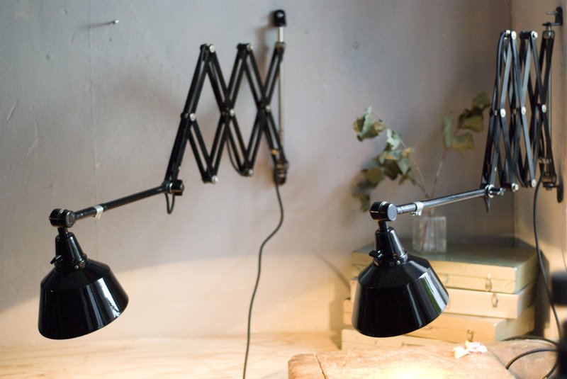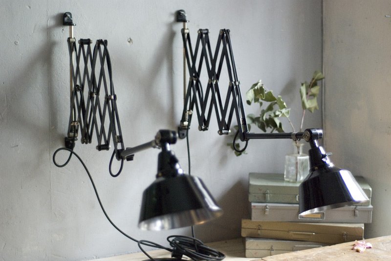 Paar von glaenzenden Scherenlampen Midgard Typ 1000-II