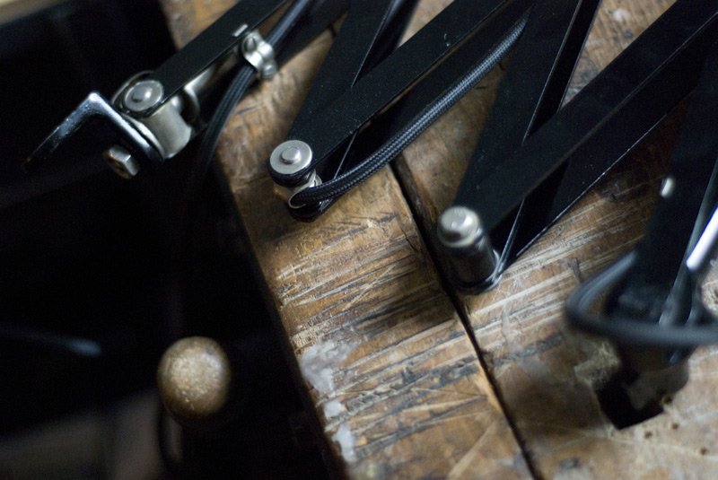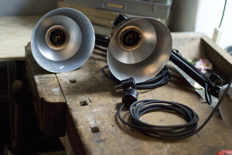Nach der kompletten Zerlegung und sorgsamen Reinigung wurden die Elemente der Leuchten neu lackiert und neu aufgebaut.