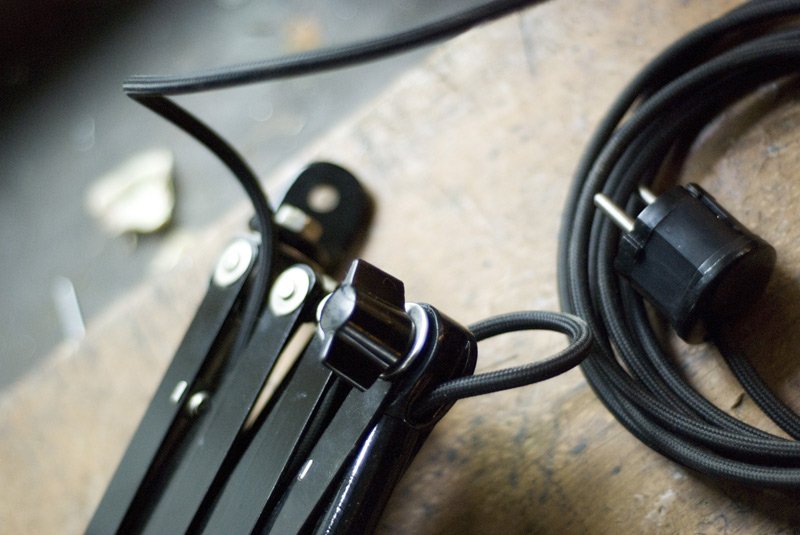 Die Elektrik wurde dreiadrig erneuert und generalüberholt. Es wurde ein schwarzes, stoffummanteltes Kabel verwendet.