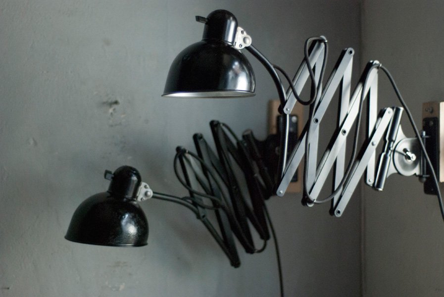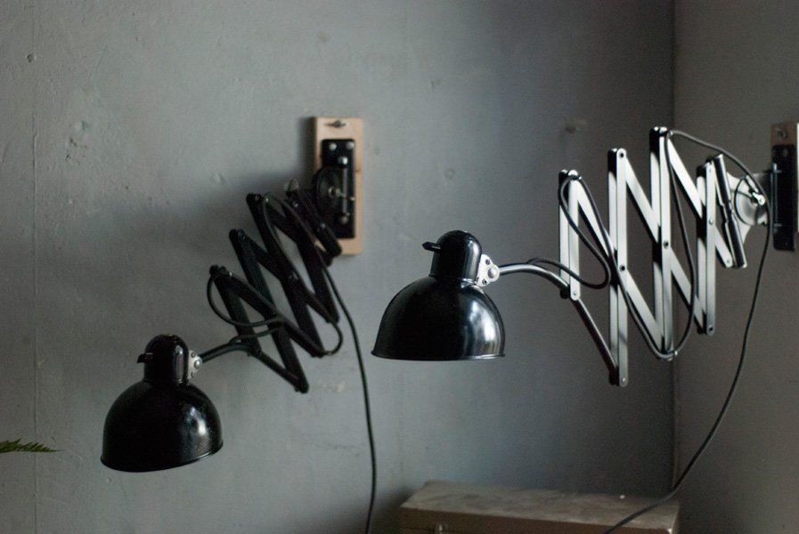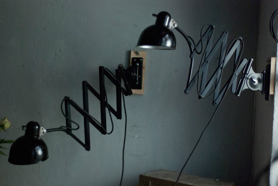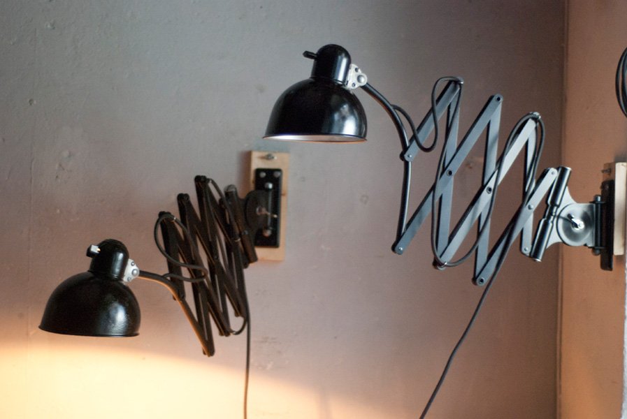 Diese Scherenlampen Kaiser Idell 6614 sind ein Designerklassiker aus den 30er Jahren.