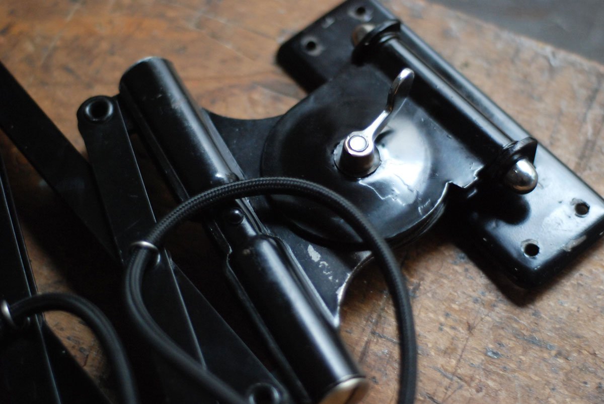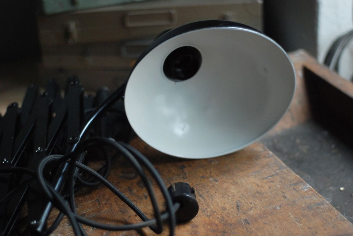 Nach der kompletten Zerlegung und sorgsamen Reinigung wurden die Schirme der Leuchten entlackt, neu lackiert. Die Teilen von den Leuchten wurden sorgfaeltig gereinigt und neu aufgebaut. Alle Einzelteile wurde entrostet, gereinigt, geölt.