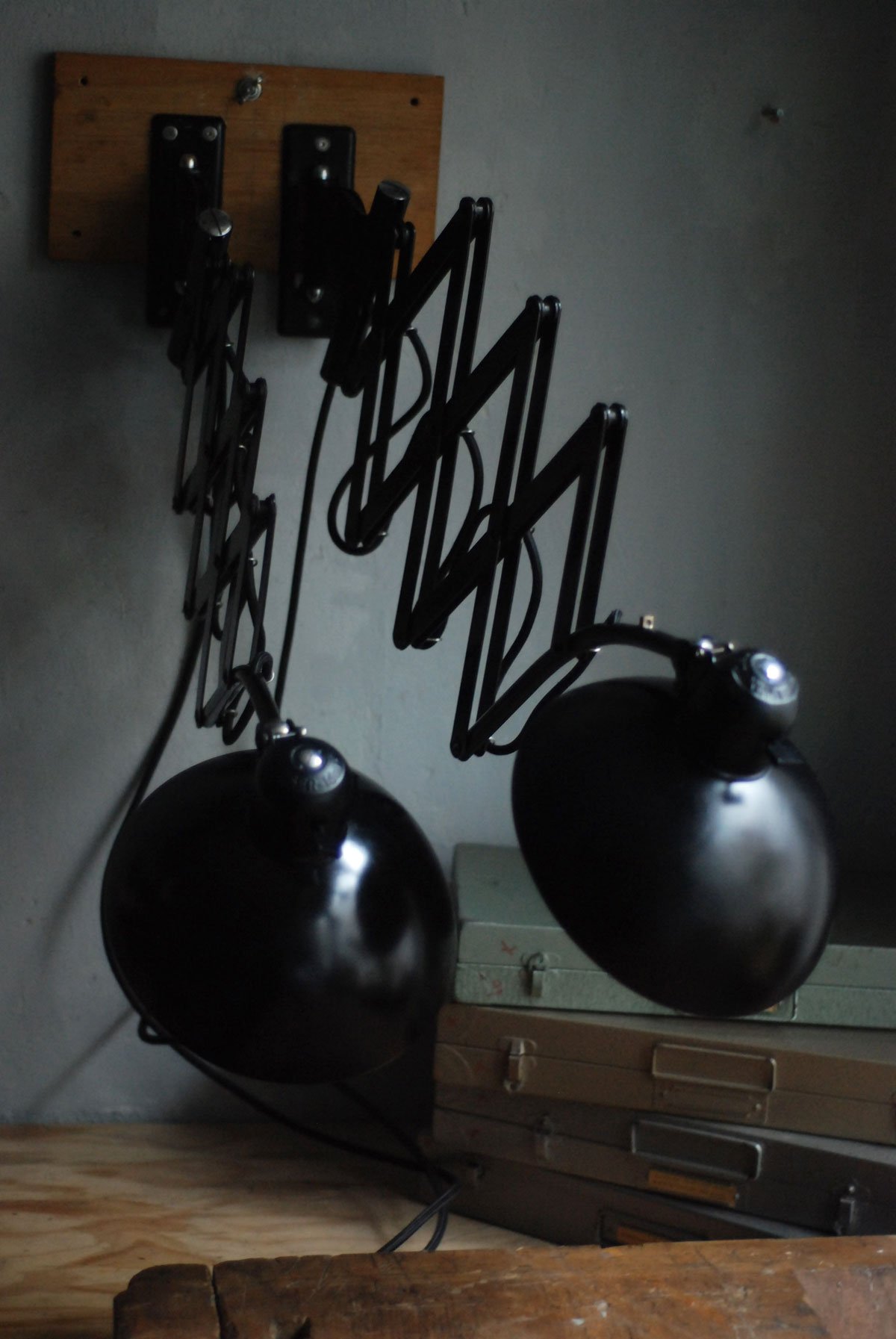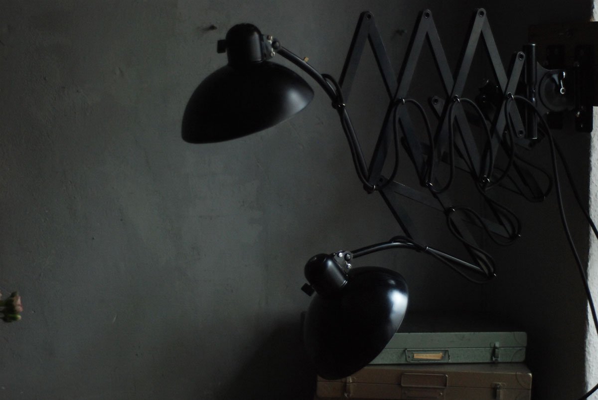 Diese Scherenlampen Kaiser Idell 6614 sind ein Designerklassiker aus den 30er Jahren.