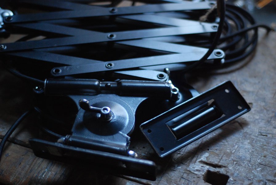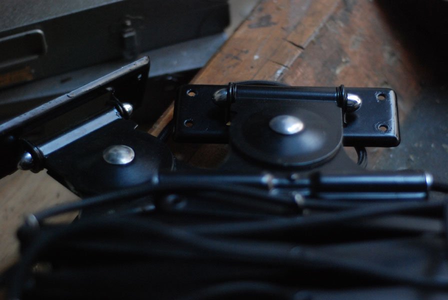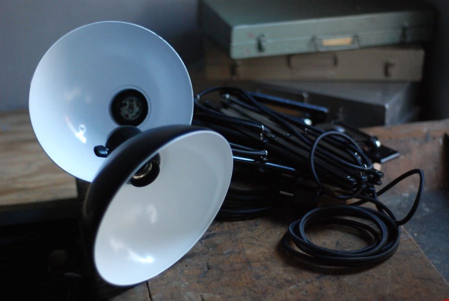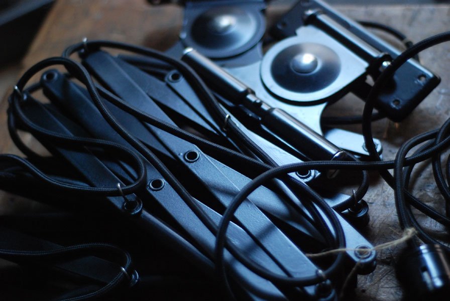 Nach der kompletten Zerlegung und sorgsamen Reinigung wurden die Schirme der Leuchten neu lackiert. Die Teilen von den Leuchten wurden sorgfaeltig gereinigt, lackiert und neu aufgebaut. Alle Einzelteile wurde entrostet, gereinigt, geölt.