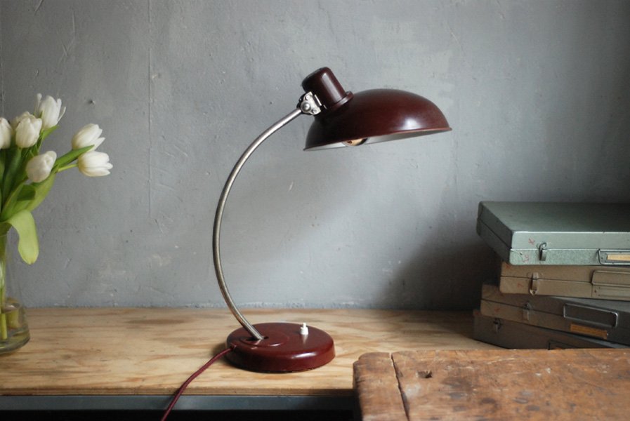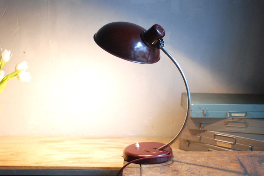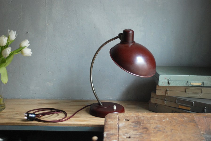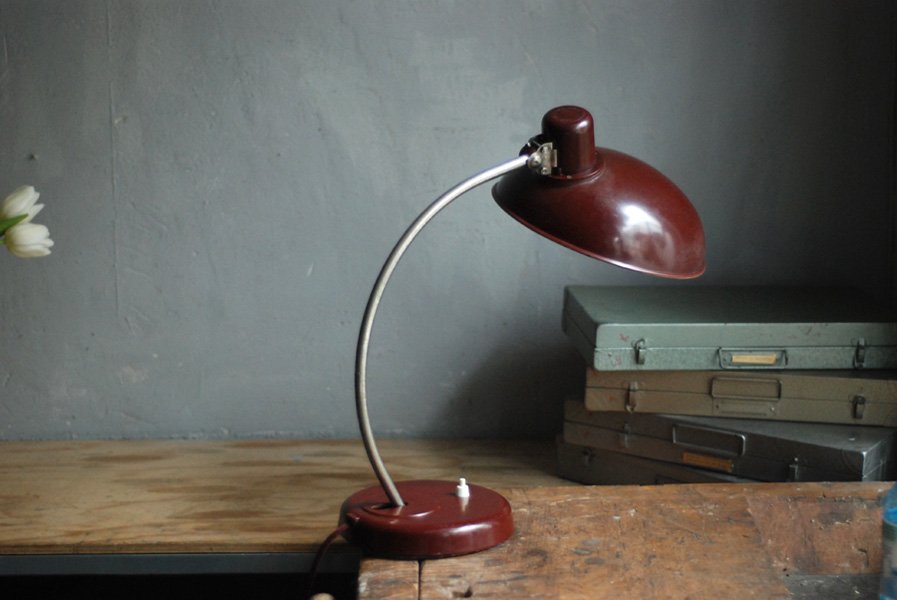 Schöne rote Schreibtischlampe Helion, Originalerhalt.