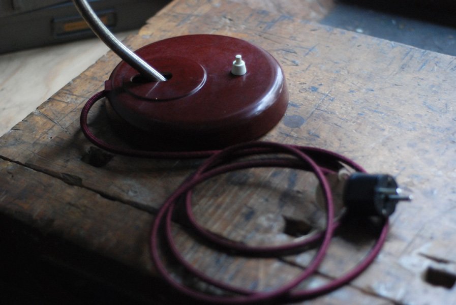 Die Elektrik wurde dreiadrig erneuert und generalüberholt. Es wurde ein schwarzes, stoffummanteltes Kabel verwendet. Die Leuchte wird mittels eines Schalters betätigt.