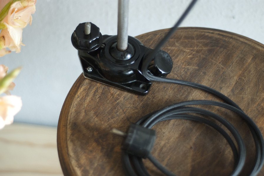 Die Elektrik wurde dreiadrig erneuert und generalüberholt. Es wurde ein schwarzes, stoffummanteltes Kabel verwendet. Die Leuchte wird mittels eines Kippschalters an dem Dom betätigt.