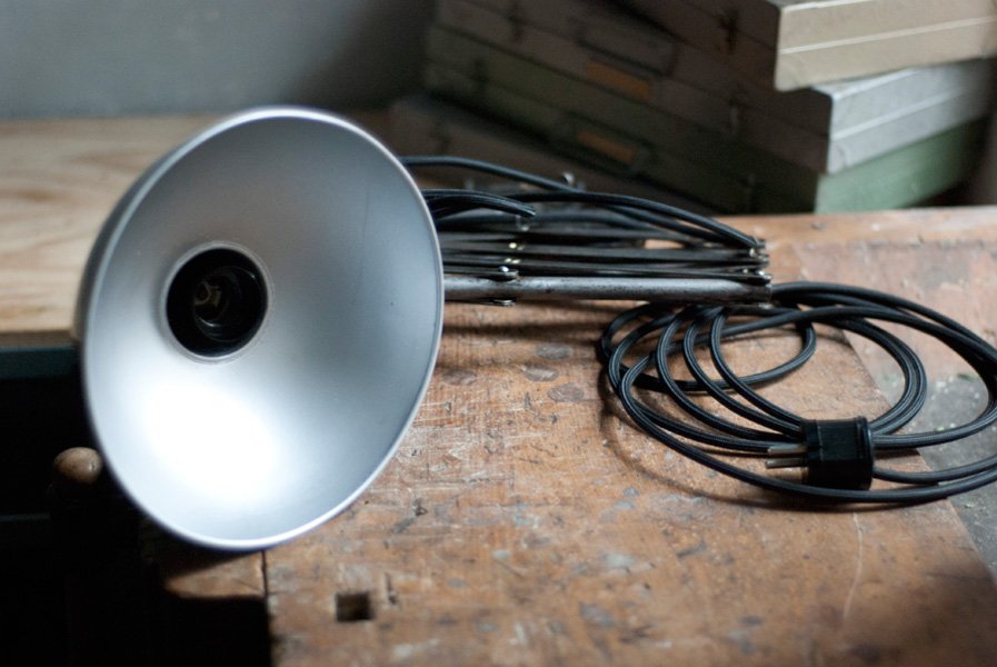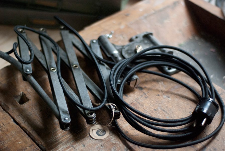 Die Elektrik wurde dreiadrig erneuert und Generalüberholt. Es wurde ein schwarzes, stoffummanteltes Kabel verwendet. Die Leuchte wird mittels des Drehschalters betätigt.