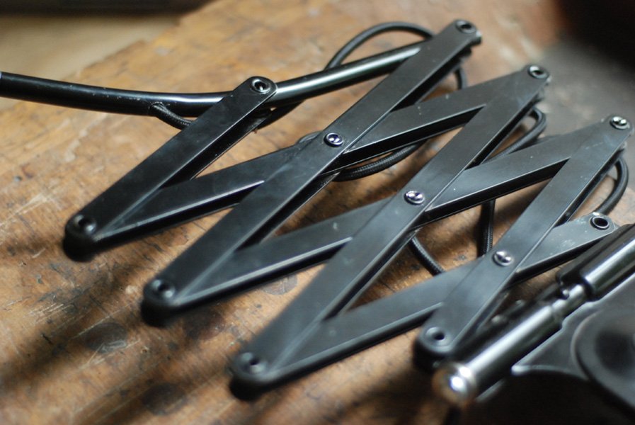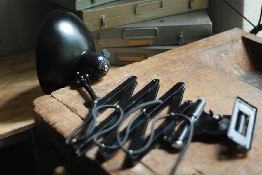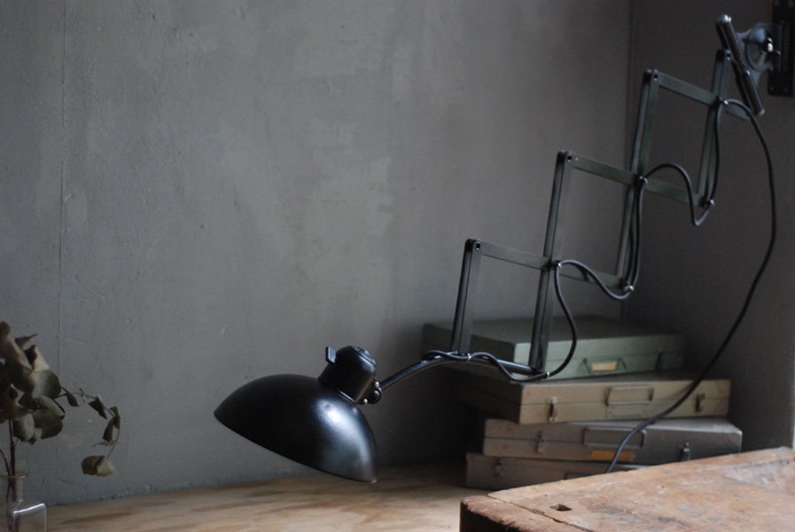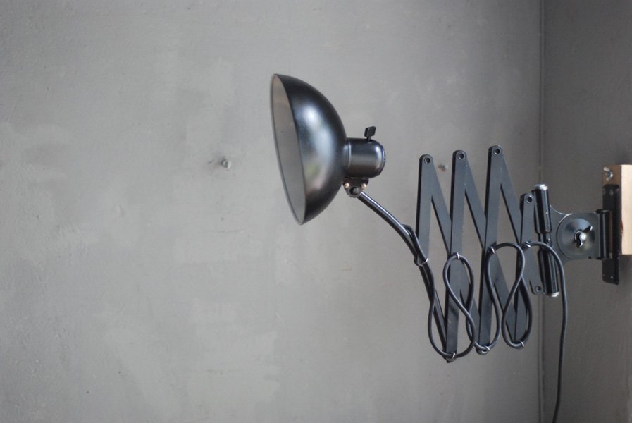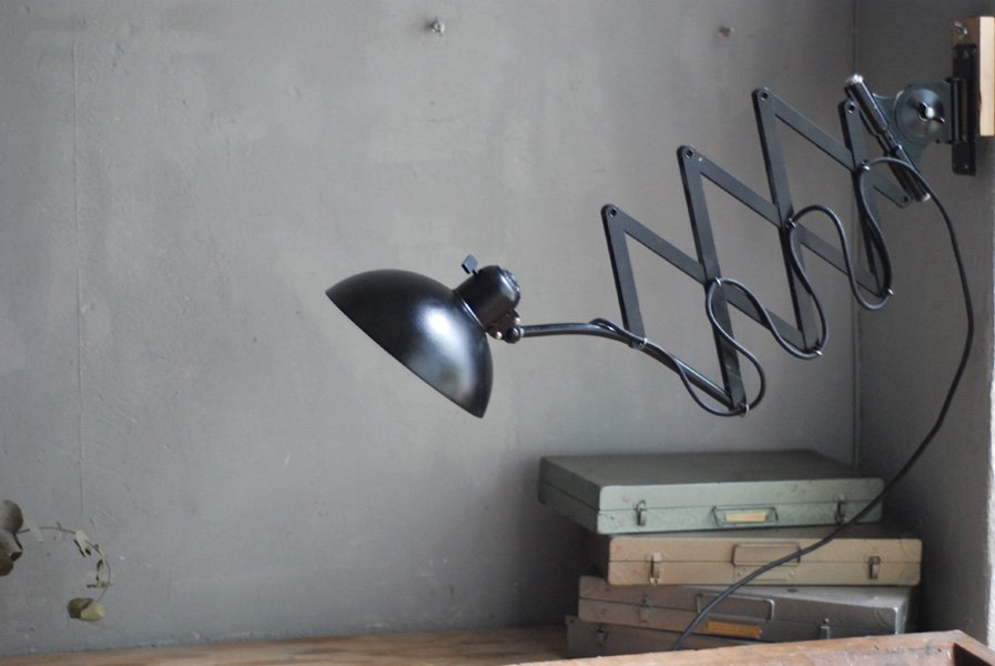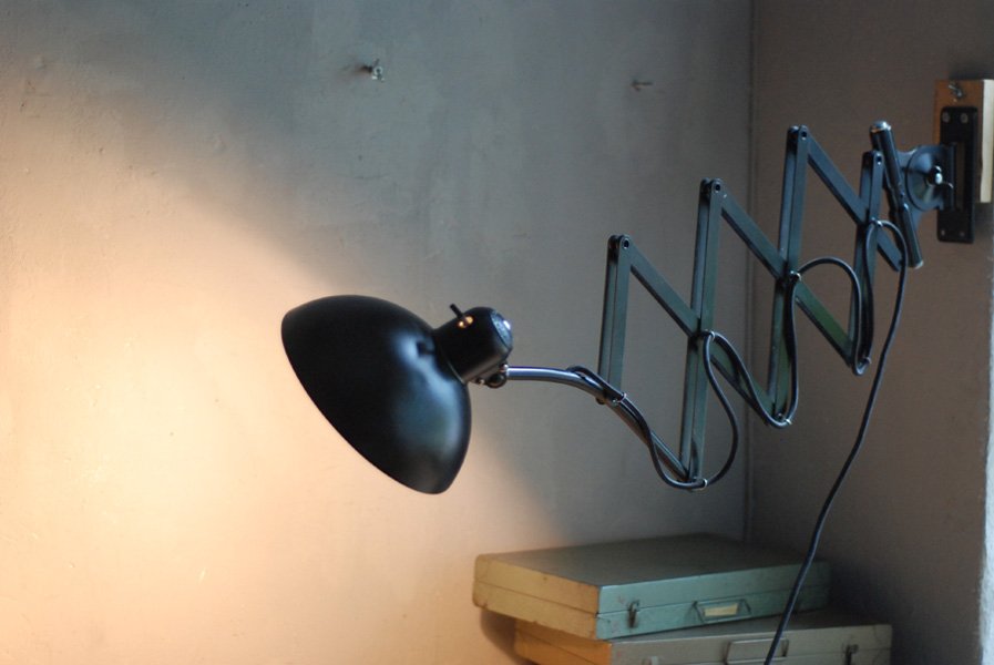 Grosse Scherenleuchte Kaiser Idell 6614 Super mit Patina.