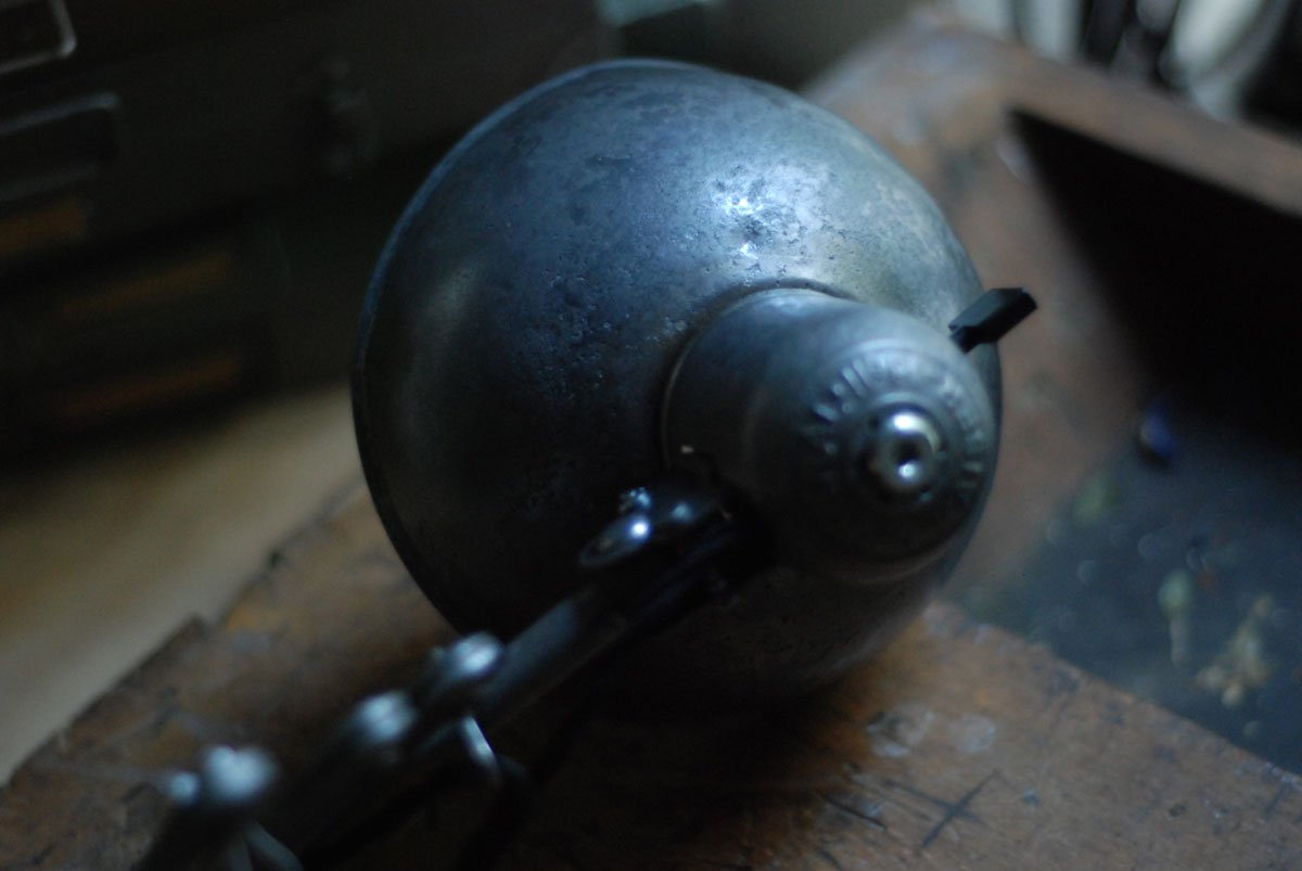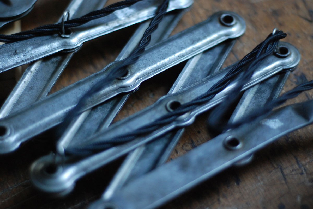 Nach der kompletten Zerlegung und sorgsamen Reinigung wurden die Elemente der Leuchte entlackt, versiegelt und neu aufgebaut.