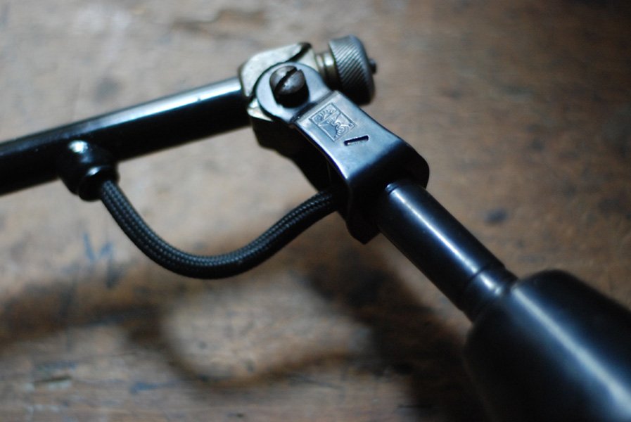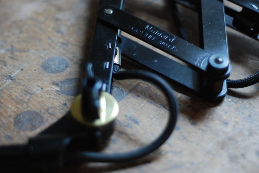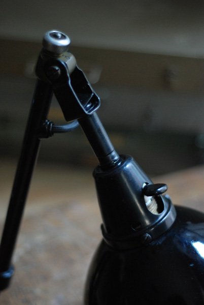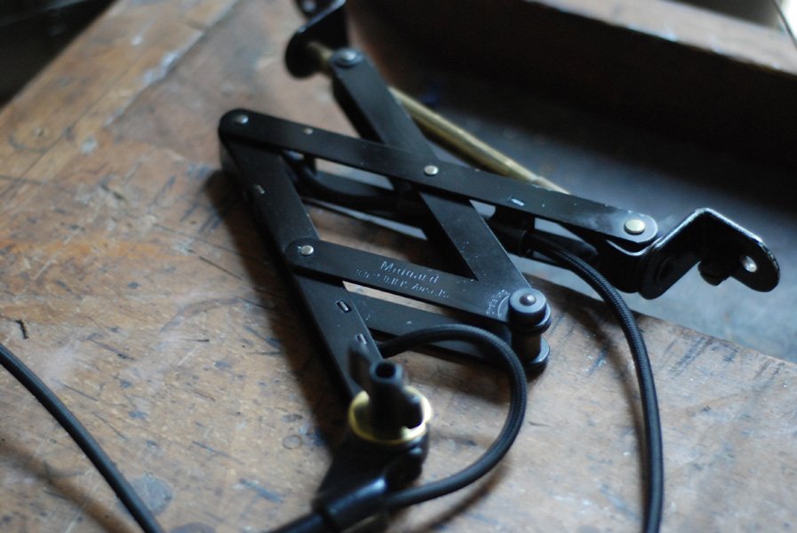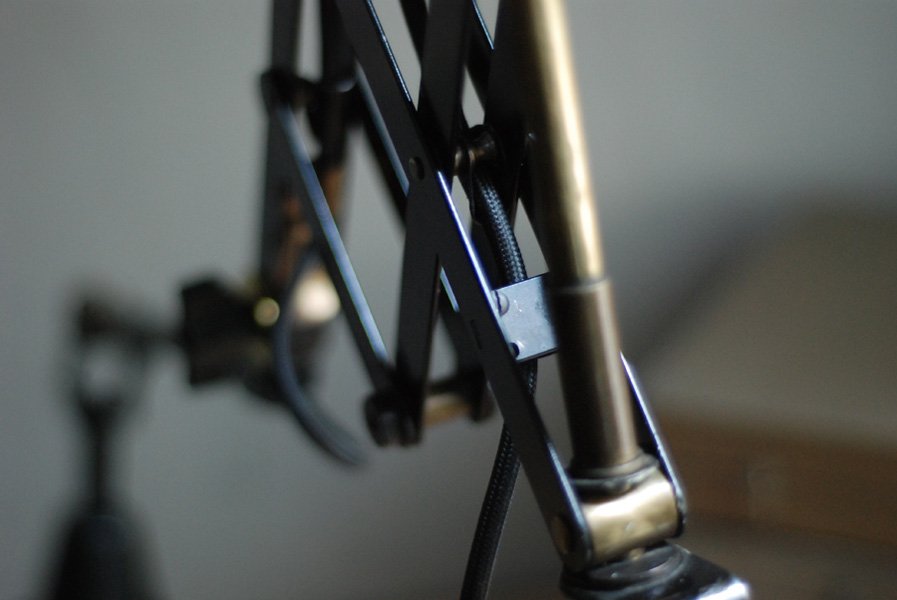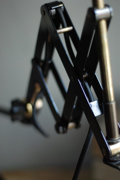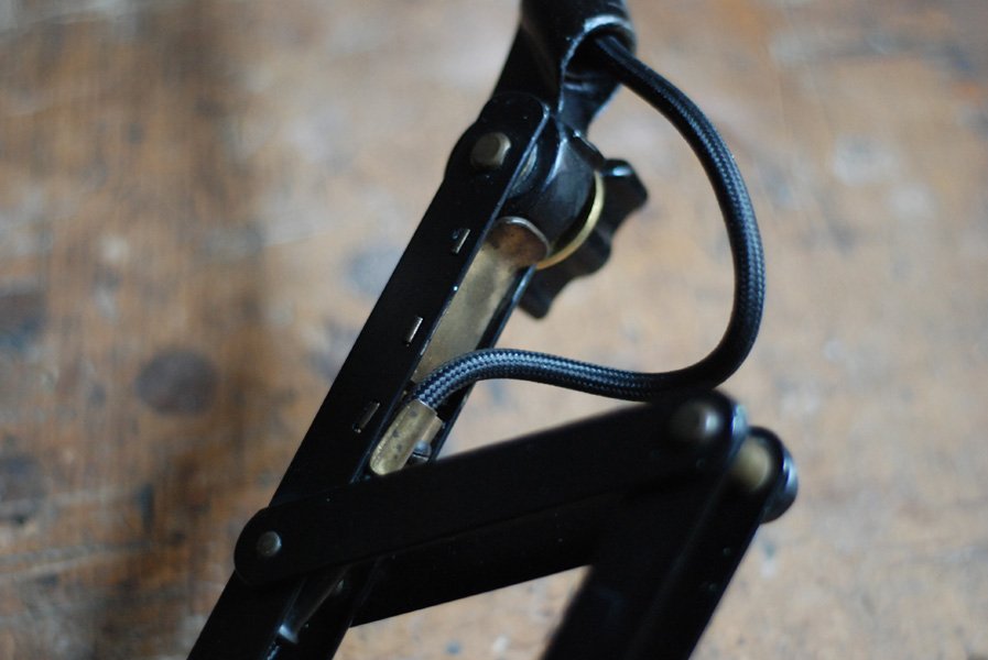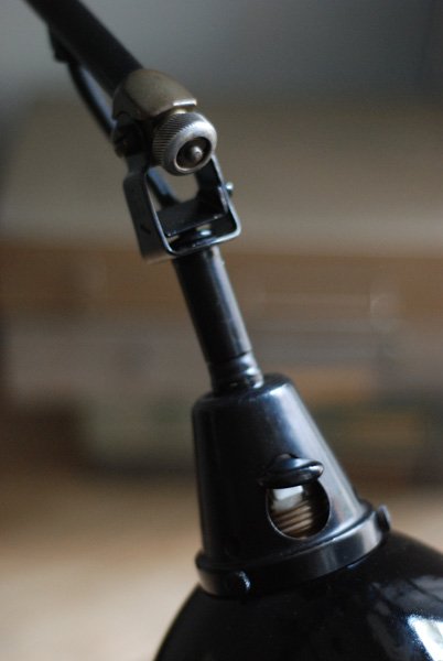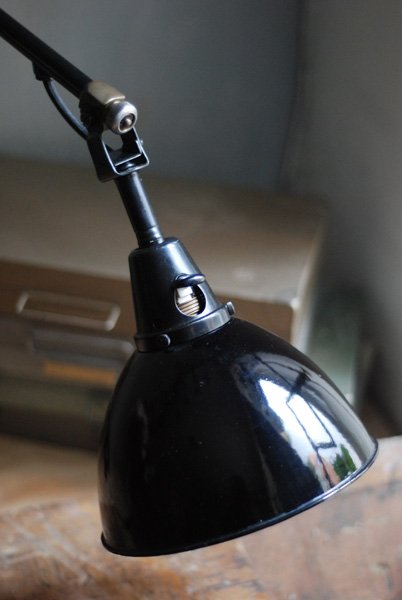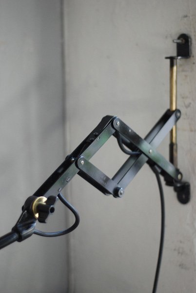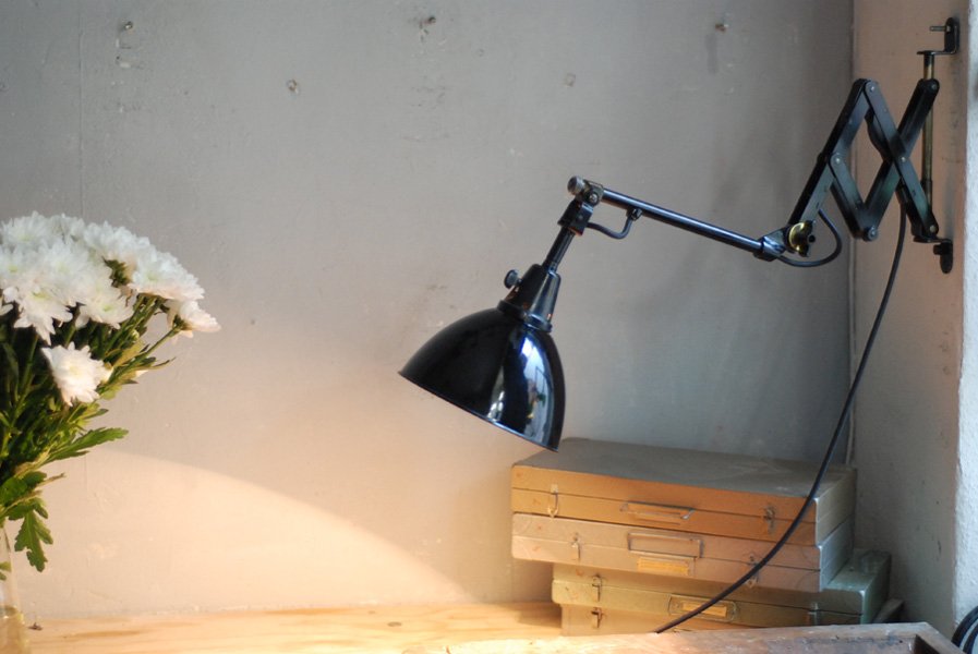 Alte Scherenlampe Midgard D.R.G.M., mod.109. mit Originallackierung und grossem emailliertem Reflektor.