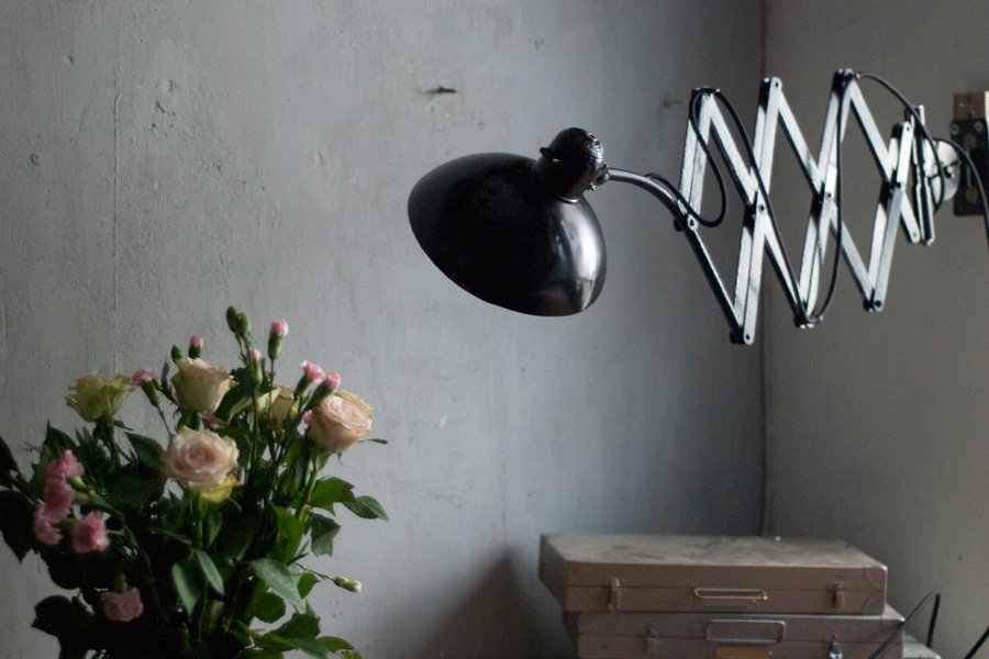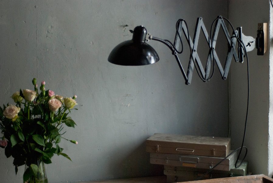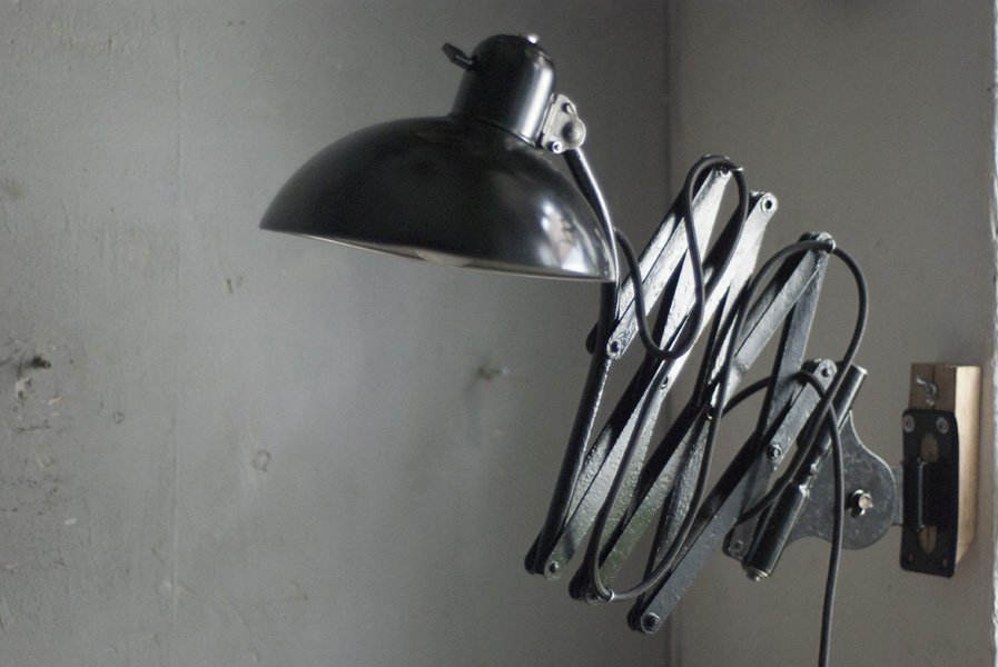 Diese Scherenlampe Kaiser Idell 6614 Super ist ein original Designerklassiker aus den 30er Jahren. Nach der kompletten Zerlegung wurden die Elemente der Leuchte sorgfältig gereinigt, lackiert und neu aufgebaut.
