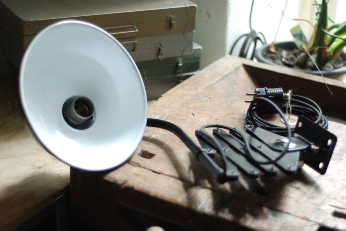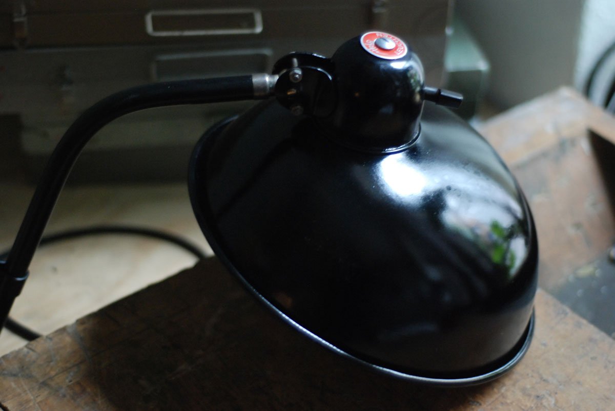 Der gebrauchte Zustand weist leichte altersbedingte Spuren auf. Die Technik der Leuchte funktioniert einwandfrei. Sie hält alle Positionnen.