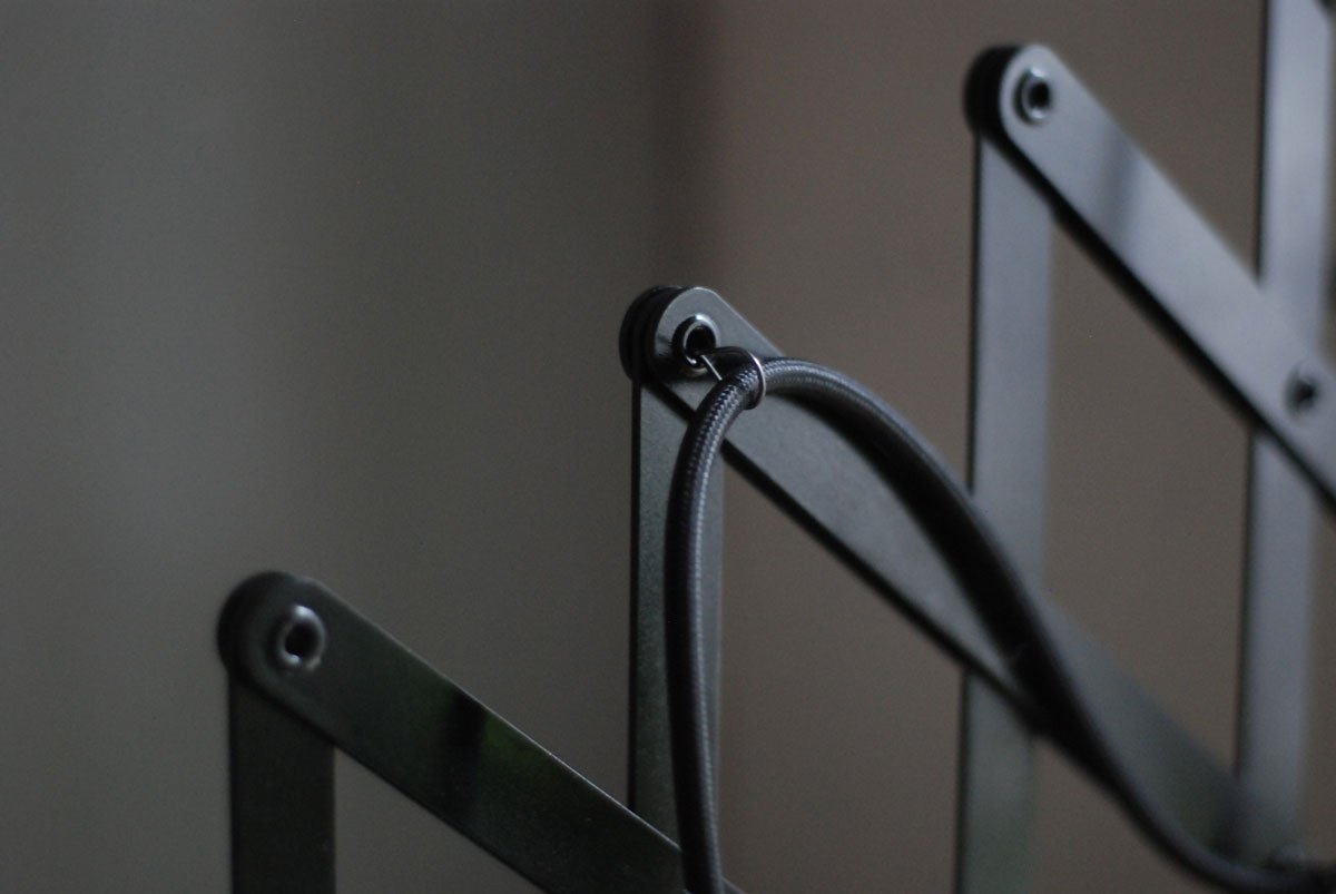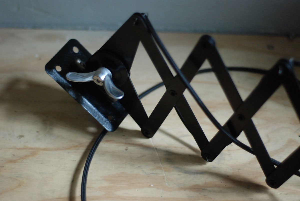 Schwarze elegante Scherenlampe Helo mit breitem Reflektor