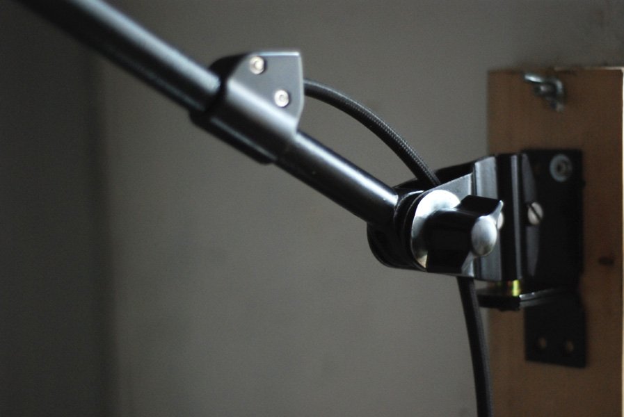 Die Elektrik wurde dreiadrig erneuert und generalüberholt. Es wurde ein schwarzes, stoffummanteltes Kabel verwendet. Die Leuchte wird mittels eines Drehschalters im Uhrzeigersinn an der Bakelitfassung betätigt.