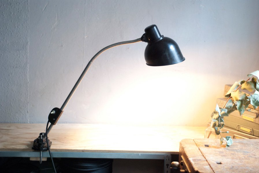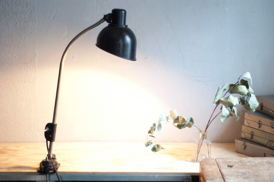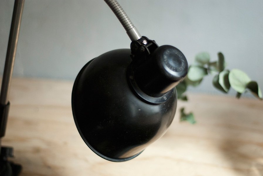 Schoene schwarze Schreibtischlampe Helion mit Klemmfuss