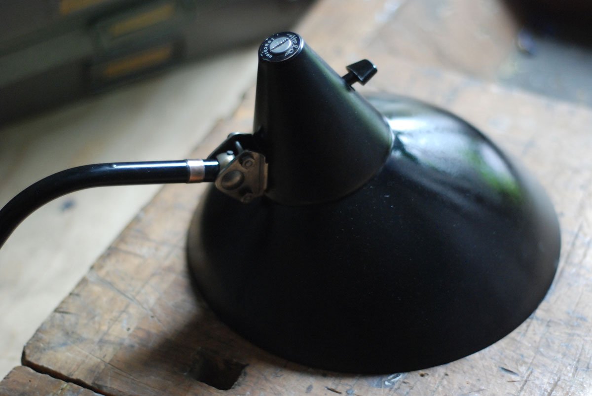 Der gebrauchte Zustand weist leichte altersbedingte Spuren und der schöne Schirm eine feine Patina auf. Die Technik der Leuchte funktioniert einwandfrei. Sie hält alle Positionnen.