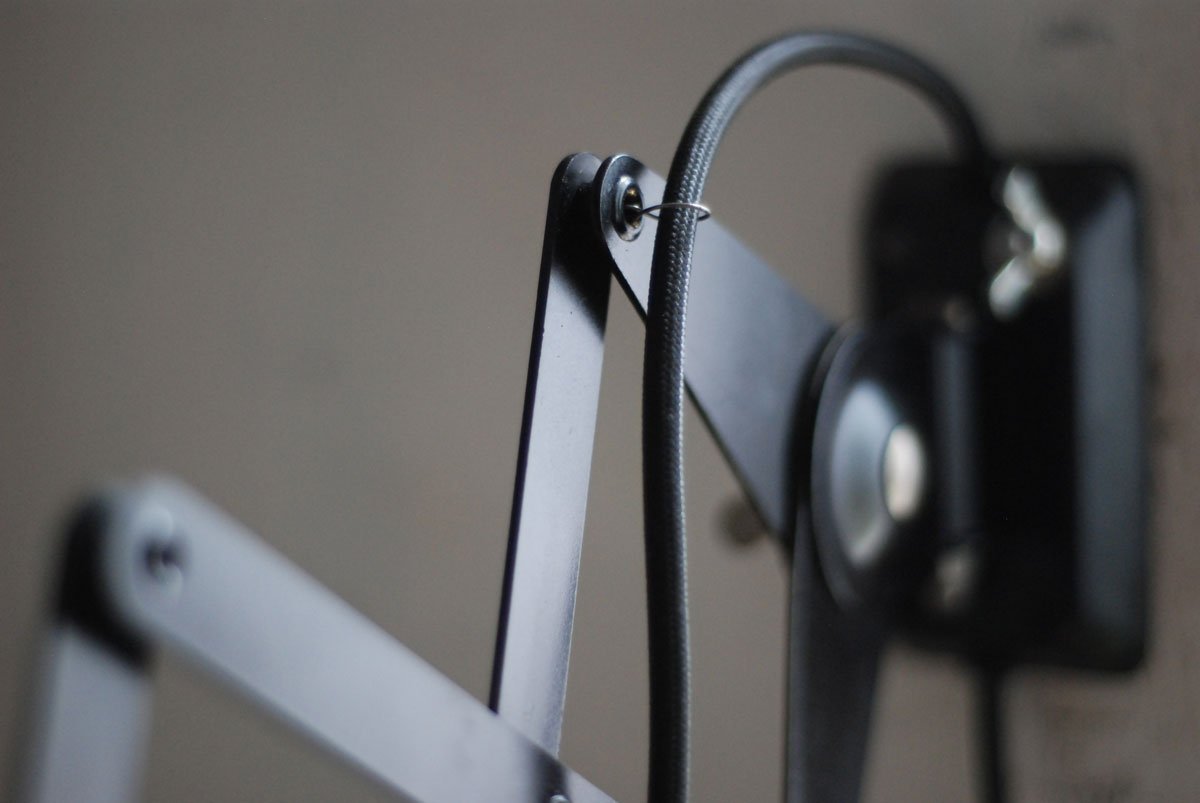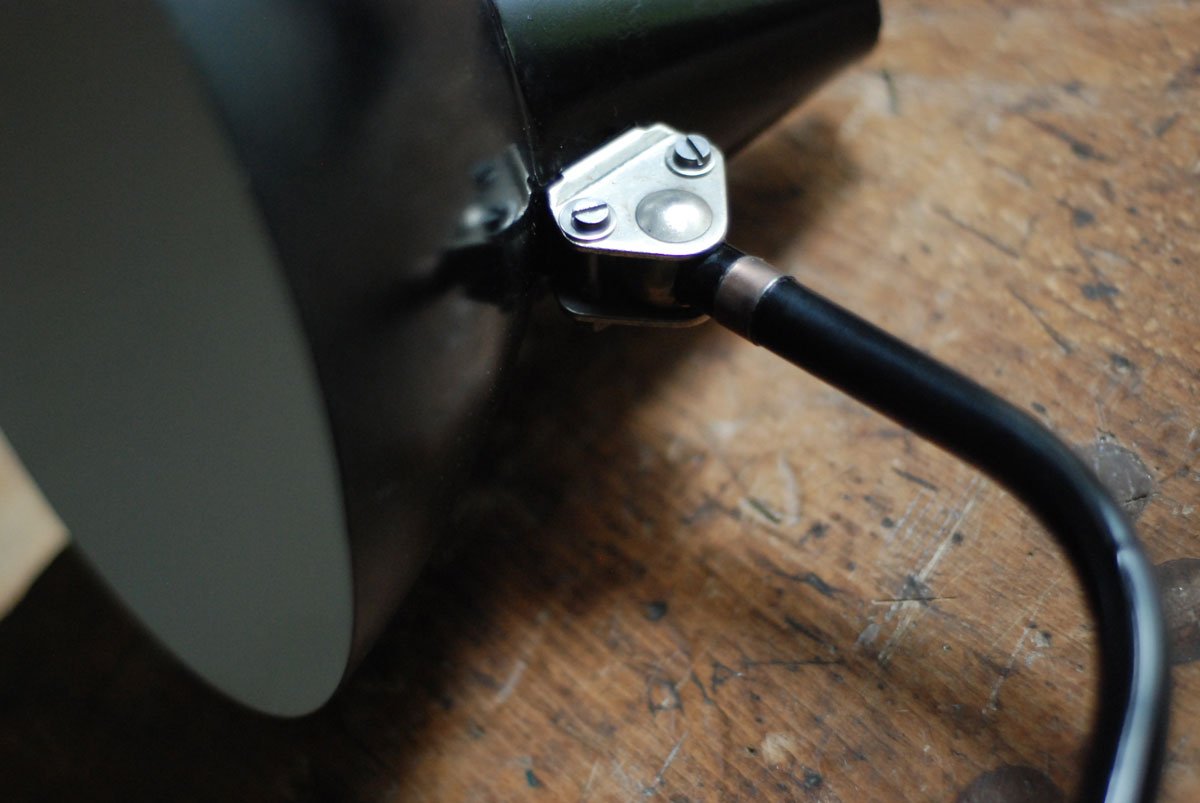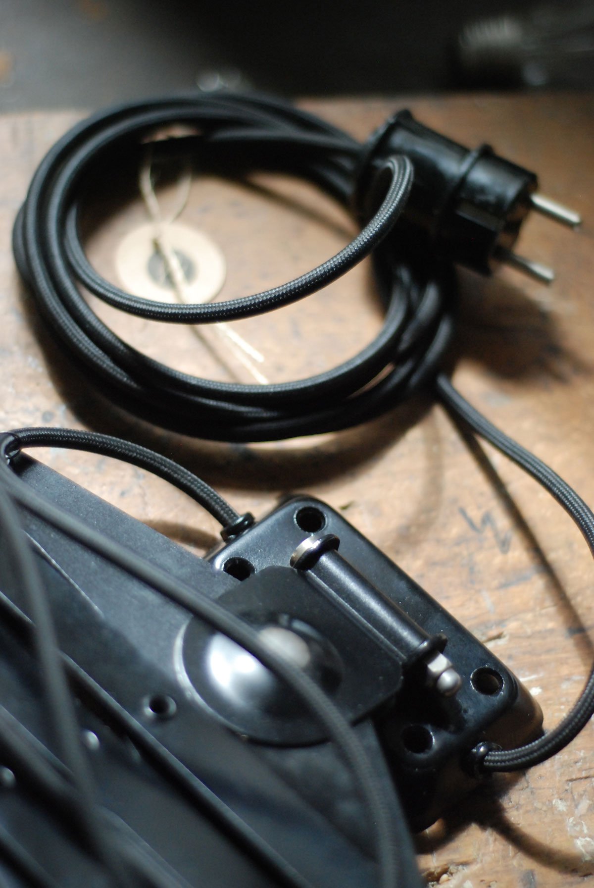 Die Elektrik wurde dreiadrig erneuert und generalüberholt. Es wurde ein schwarzes, stoffummanteltes Kabel verwendet. Die Leuchte wird mittels eines Drehschalters an der Fassung betätigt.