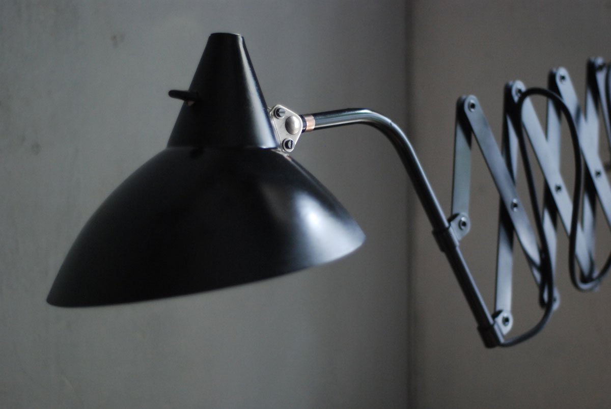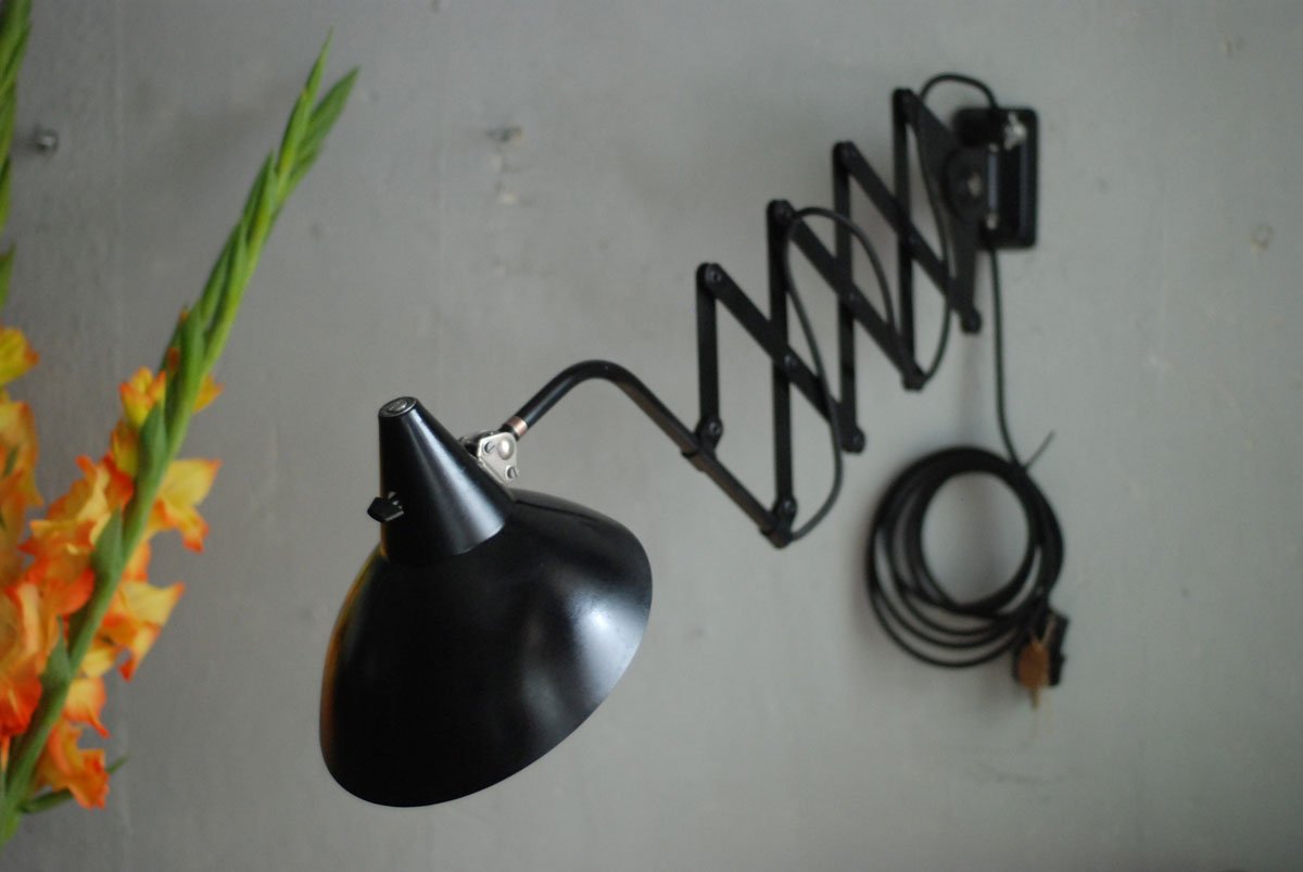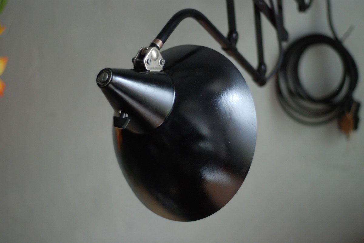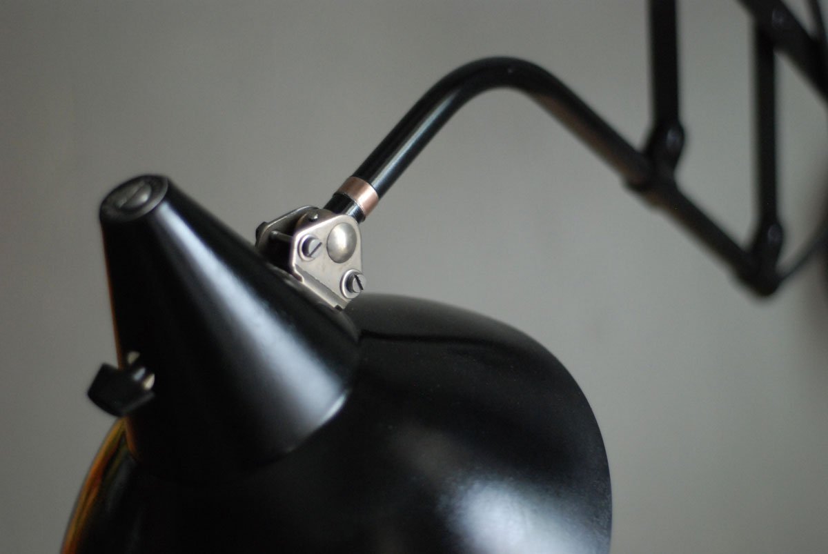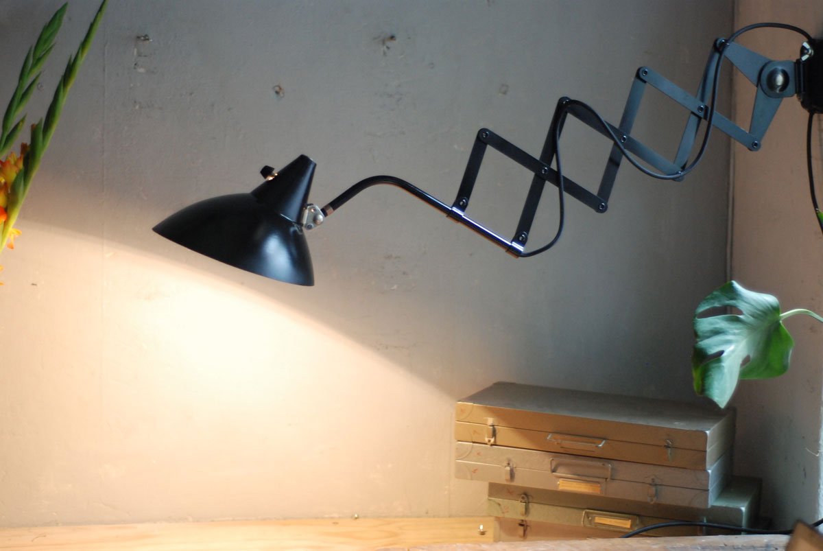Schwarze Scherenlampe Helo mit einzigartigem ‚Hexenhut‘.