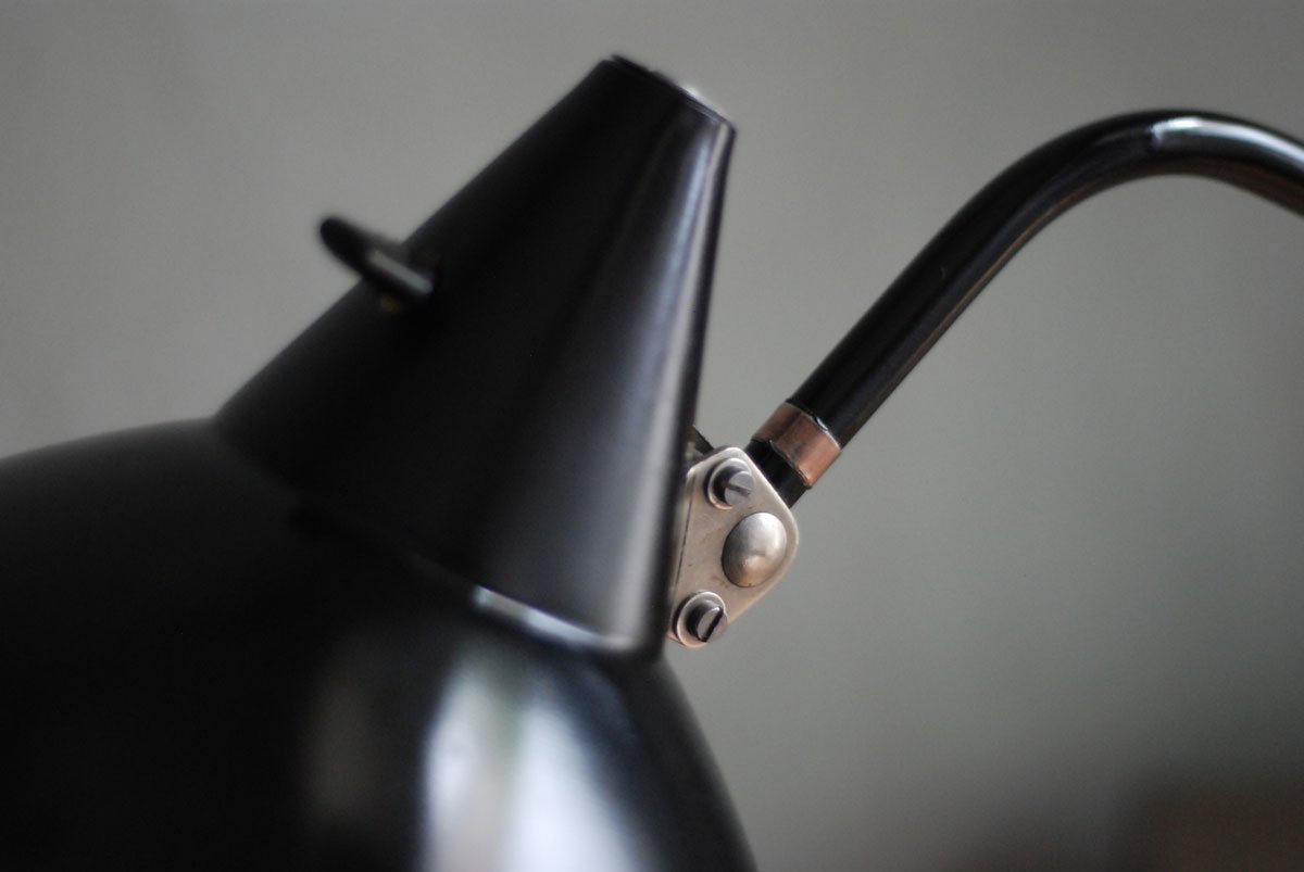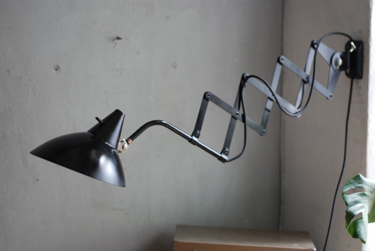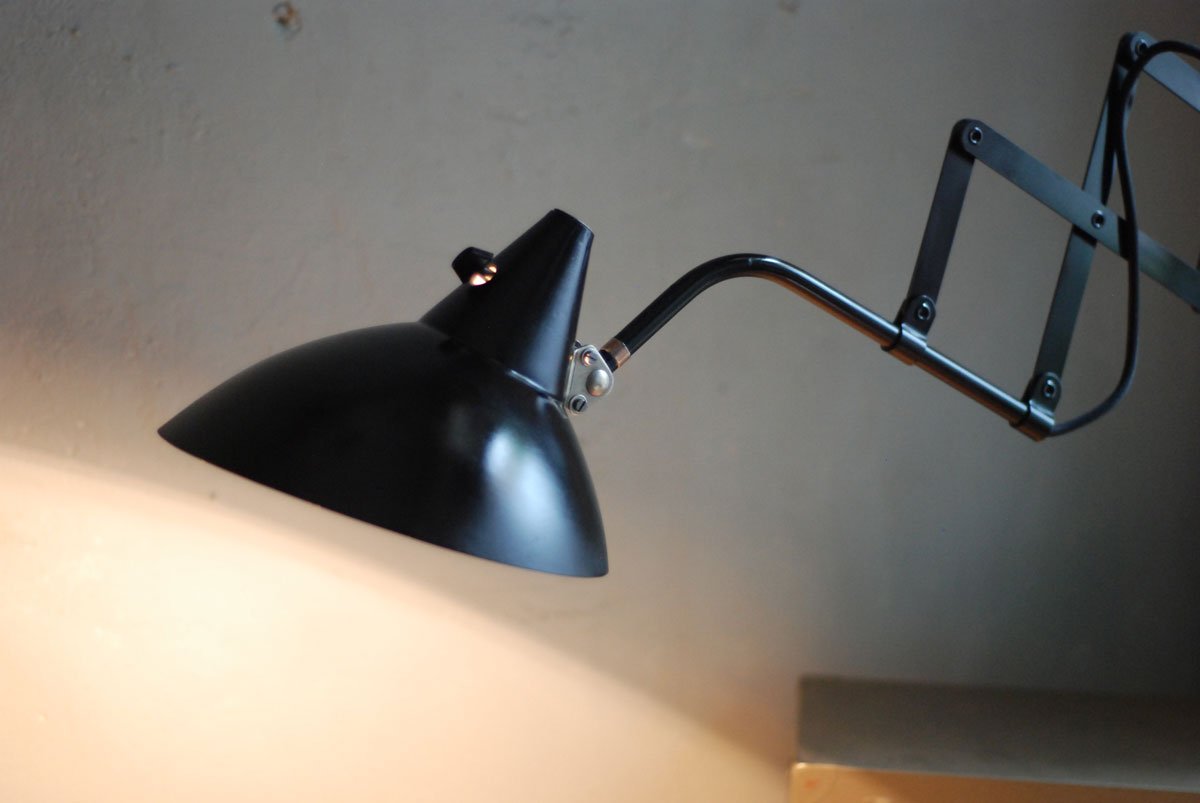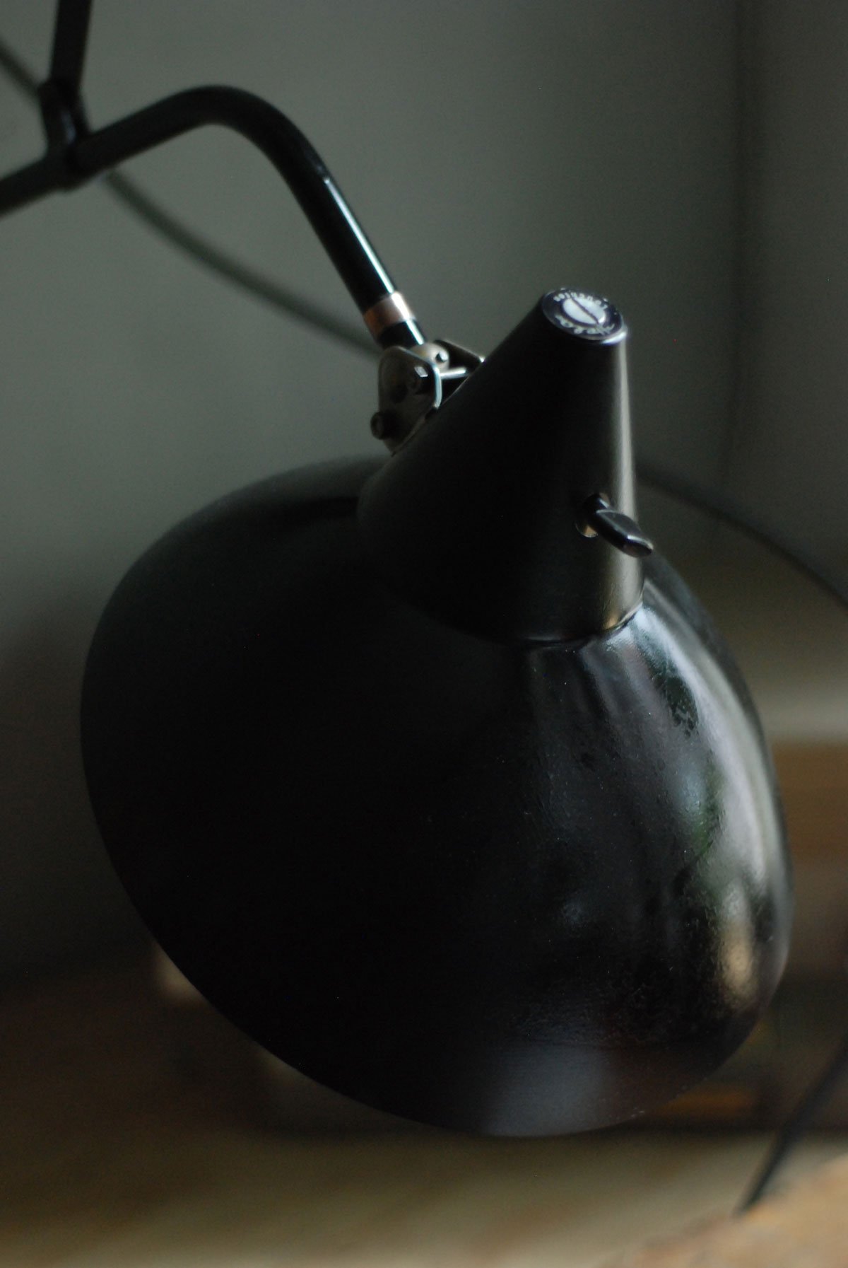 Schwarze Scherenlampe Helo mit einzigartigem ‚Hexenhut‘.